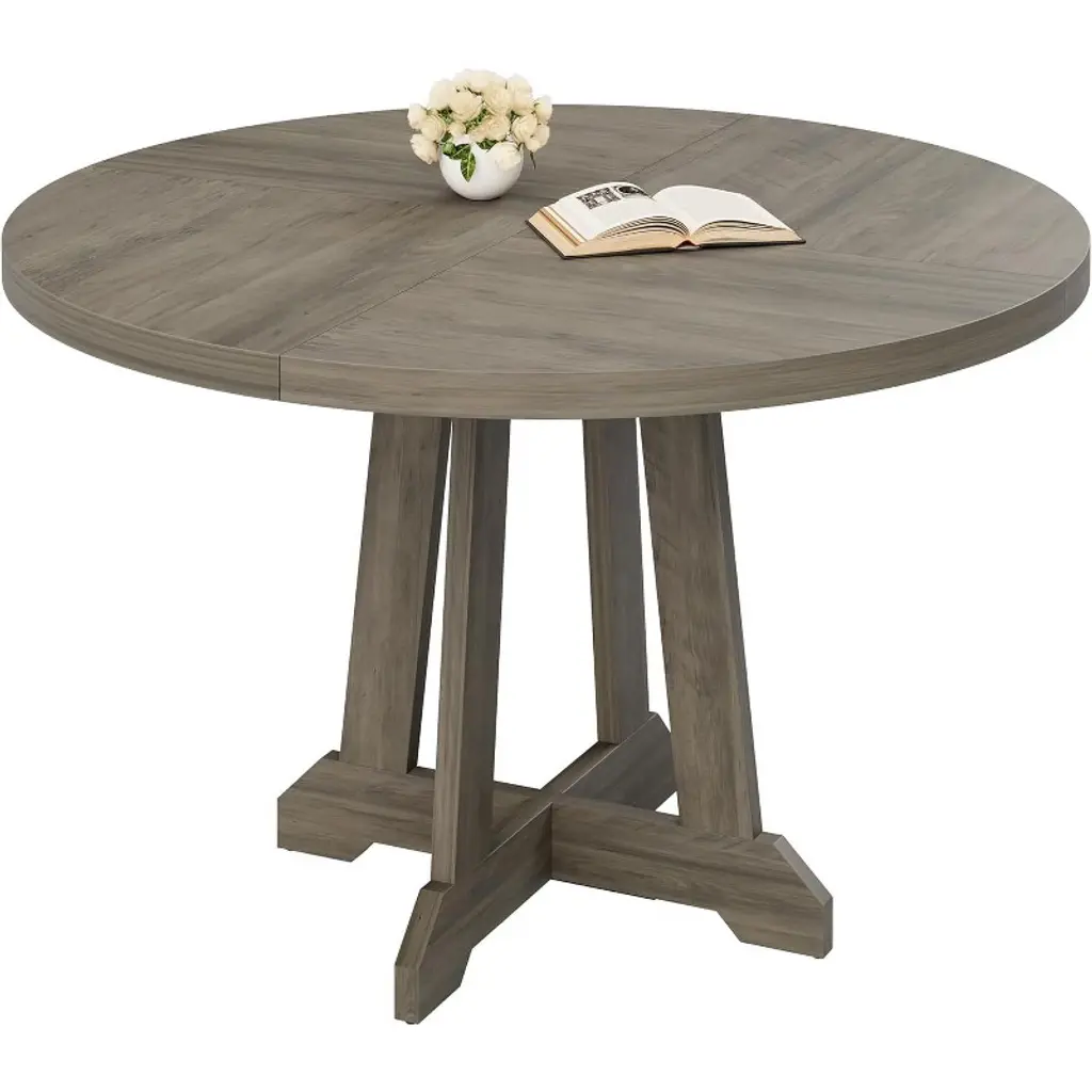 Round Dining Table For 4-6, Wooden Kichen Table With Sturdy X-shaped Legs, Circle Pedestal, Coffee Tables For Dining Room, Kitchen