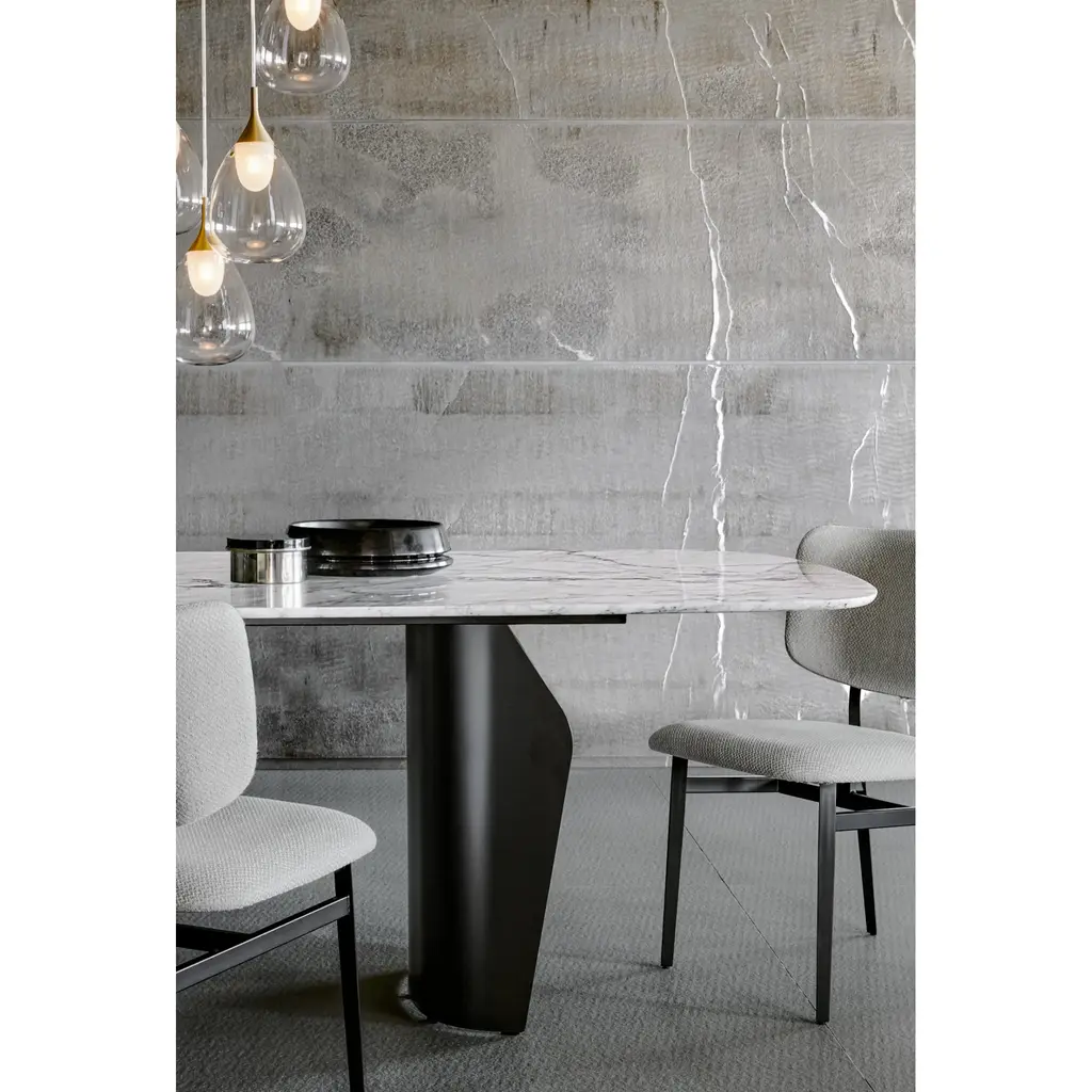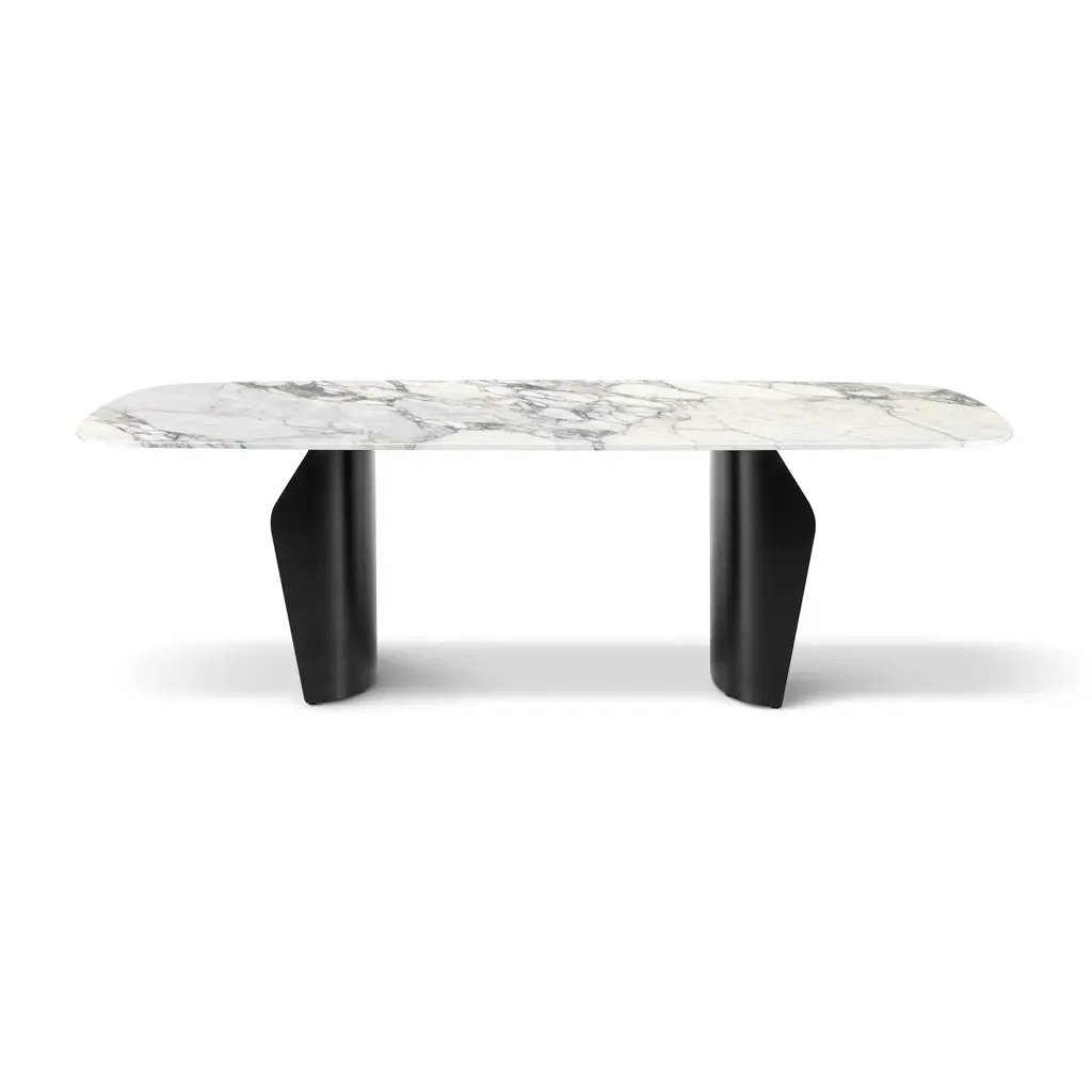 Flame's main features are its harmonious shapes and light, sinuous volumes. The top, which is visibly suspended, is fully usable thanks to the position of the double base designed to optimize the overall space. Form and function are perfectly expressed in this table: the extensive customization options allow you to arrange it according to your tastes, needs and the mood of the surrounding space. The top is available in a number of sophisticated finishes – from wood to ceramic and marble – and you can choose from various metal options for the base. A wooden base is also available for this modern living room table (Flame Wood).