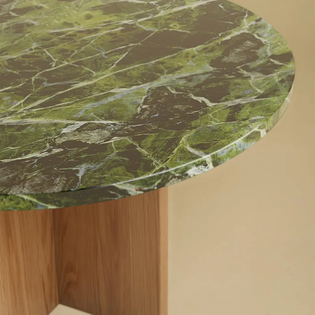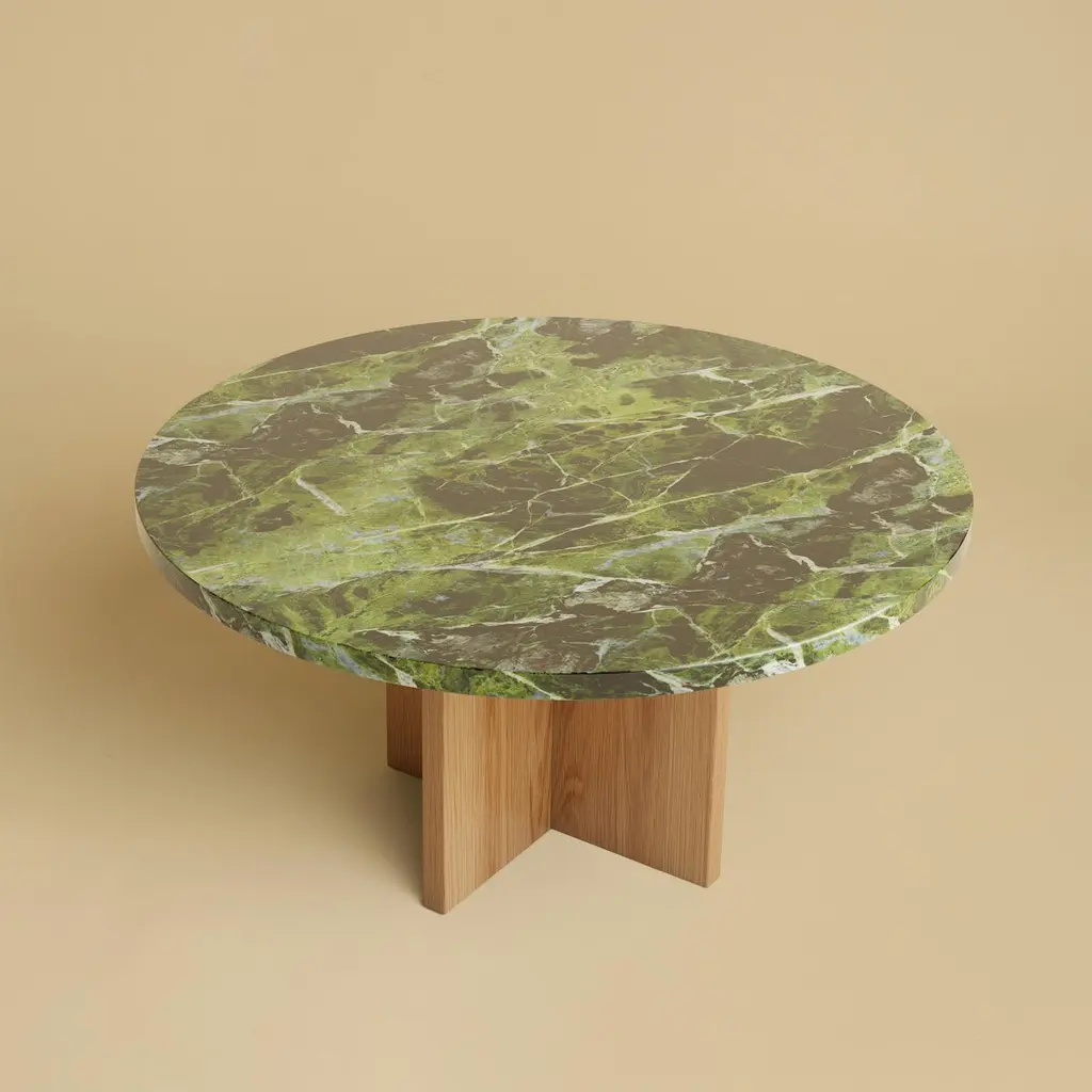 Round Green And Black Marble Top And Natural Oak Coffee Table By Lebanto