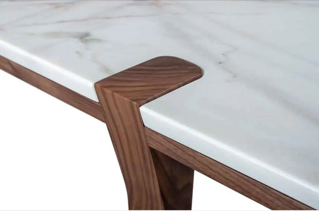 Beautiful center corner table, was designed to disrupt the Classic position of the legs of most of the tables, putting it on a particular position that assures the stability and leaves the corners free.Oak or walnut wood, available.(White Italian marble top available, price on request).Rectangular model available as well.Due to differences in monitors, colors of products may appear different to those shown on this page.The price shown here is for oak and premium marble top. Please ask other prices for variations.