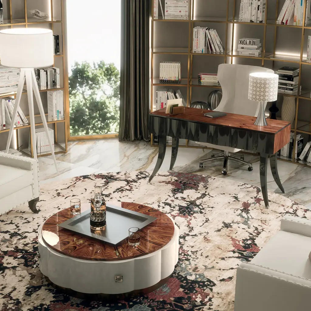 Bringing together tradition and modernity, the exquisite designs of the new Oscar Collection adapt to settings with a contemporary and cosmopolitan flavor. Featuring sophisticated elements, such as santos rosewood, this splendid Round Coffee Table with, has a sturdy structure and a polished finish, resulting in a remarkable piece of refined quality furniture.