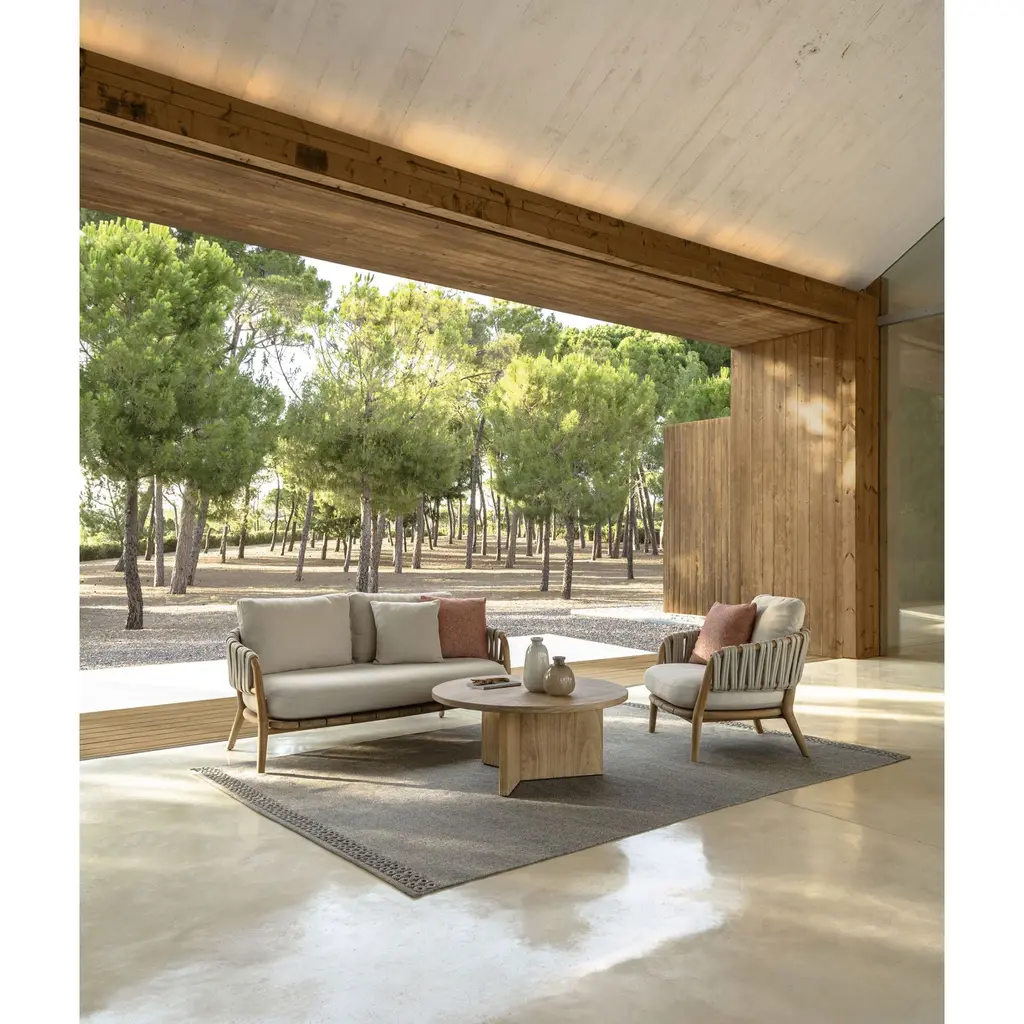 The Venice coffee table is defined by a monolithic design, which integrates naturally into the outdoor environment, thanks to the intrinsic charm of the materials. The solid wooden structure accoya supports the lava stone top, available in various colors, chosen to recall the warm shades at sunset and cold at dusk of the Venetian seas. The effect is made more evident by the polished ceramic finish of the stone and gives a romantic atmosphere to the outdoor living.