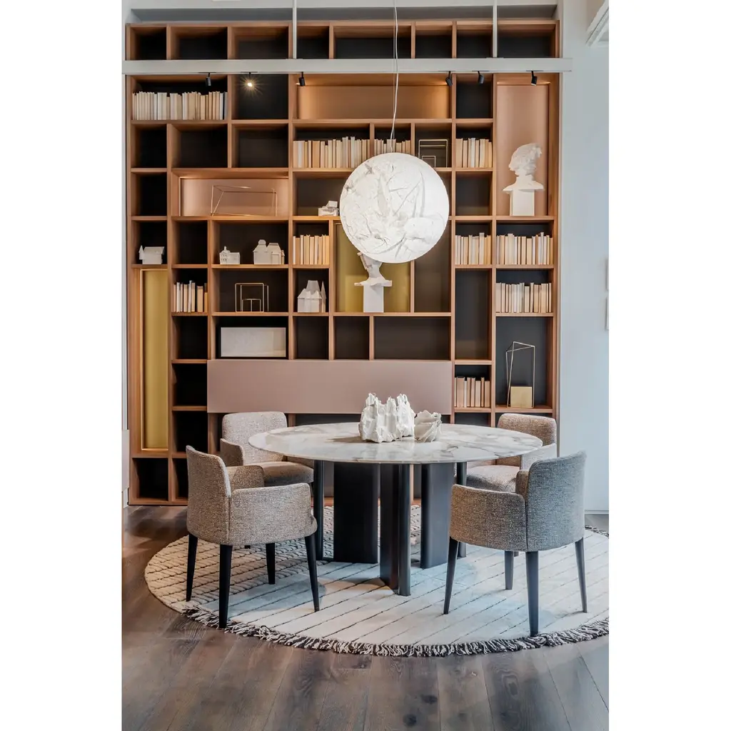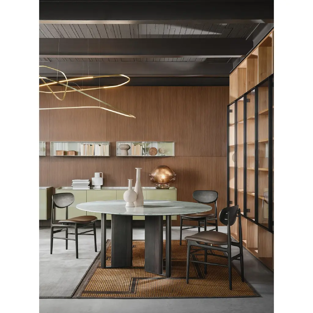 The Round Sculptural Coffee Table by Lema is the sculptural table that becomes the protagonist of the living area thanks to the design of its base. Consisting of an alternation of individual elements crossed by space, the base of In-Between gives two-dimensionality to the living area. The round top touches the base, giving lightness to the whole figure.