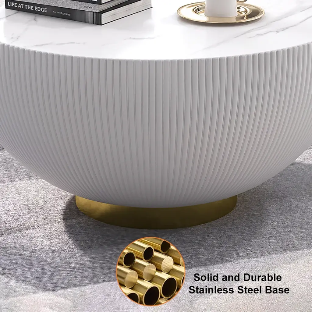This elegant drum-shaped coffee table set features durable sintered stone tops and luxurious PU leather upholstery. The stainless steel base provides strong stability while the spherical design creates a modern focal point for any living space.