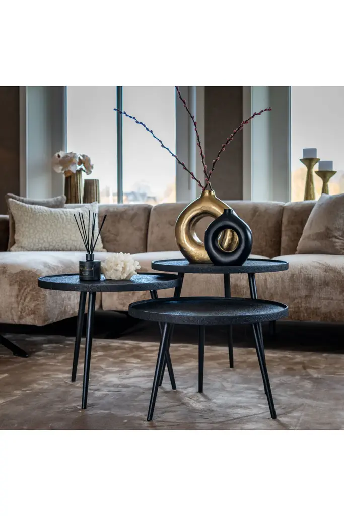 Oxford by Richmond Interiors is a classic set of 3 round coffee tables each with three slender legs expertly crafted from metal. Its tabletops feature a rough finish which gave it a distinct quality. Inject timeless furniture that's both practical and lovely in your abode.