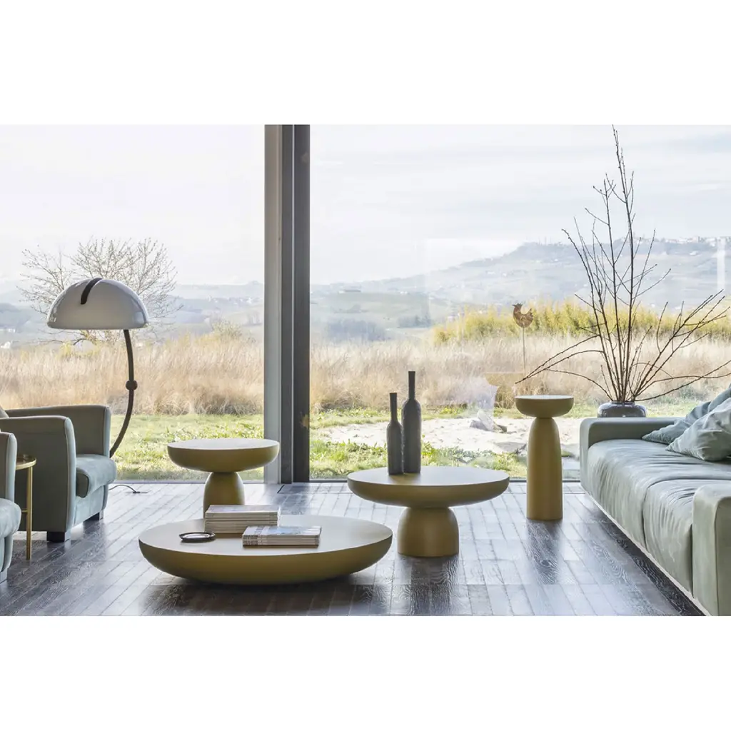 Introducing the Mogg Olo round wooden coffee table. Crafted from solid ash wood with a Moka stain, Olo is a modern sculpture that will elevate any living space. Its monolithic design exudes an air of sophistication and its essential shapes add maximum expressive force. Elevate your living area with Olo.