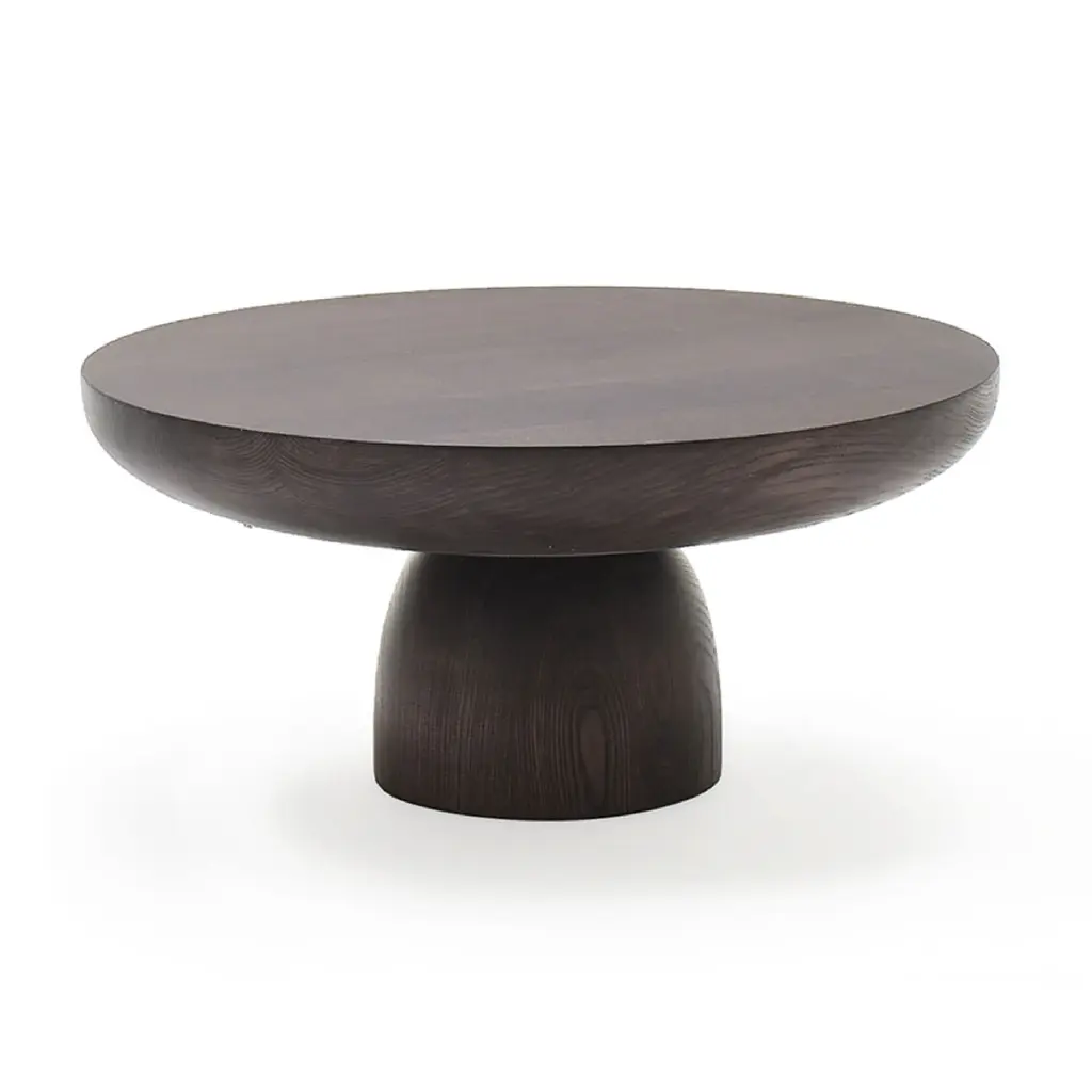 Introducing the Mogg Olo round wooden coffee table. Crafted from solid ash wood with a Moka stain, Olo is a modern sculpture that will elevate any living space. Its monolithic design exudes an air of sophistication and its essential shapes add maximum expressive force. Elevate your living area with Olo.