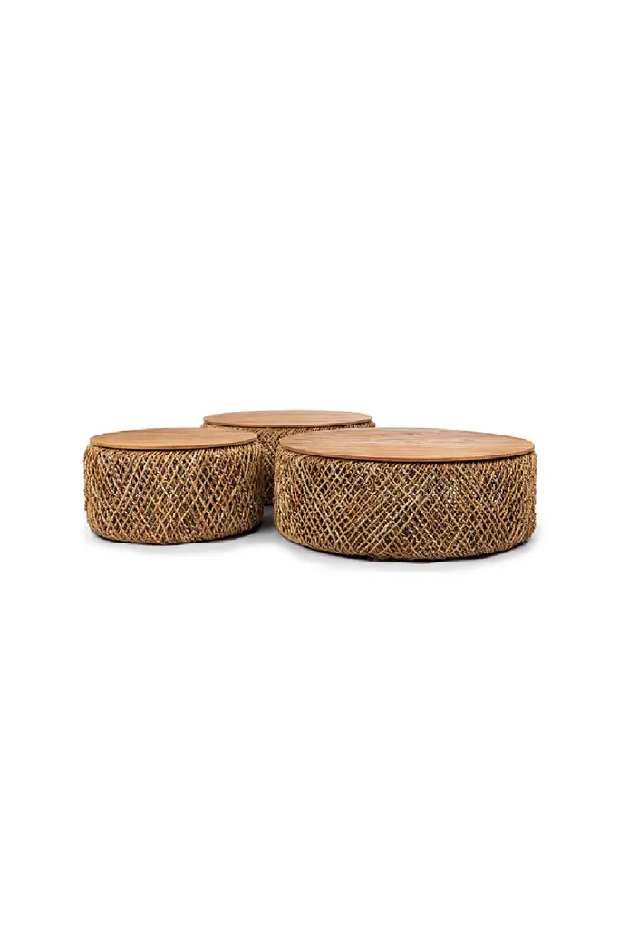 Round Woven Abaca Coffee Table Set (3) | Dbodhi Knut