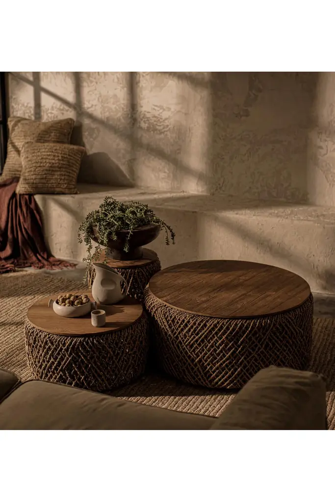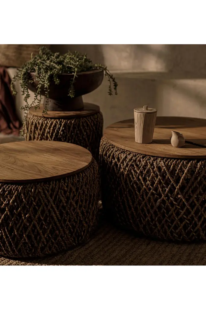 Round Woven Abaca Coffee Table Set (3) | Dbodhi Knut