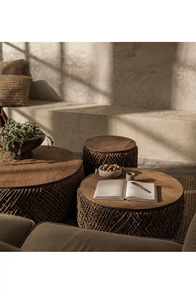 Round Woven Abaca Coffee Table Set (3) | Dbodhi Knut