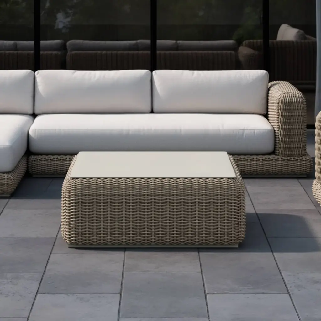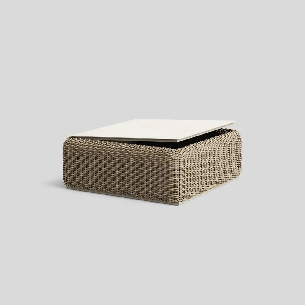 Don’t let its soft curves fool you. Made with durable synthetic wicker and aluminum, the Roundabout Coffee Table plays hard and works harder. The coffee table is fade-proof, rust-resistant, and designed to stand up to the elements, and the top opens to reveal storage space for throw pillows, blankets, and other accessories. Pair the Roundabout Coffee Table with a custom Roundabout Collection seating configuration and enjoy many years of elevated outdoor living.