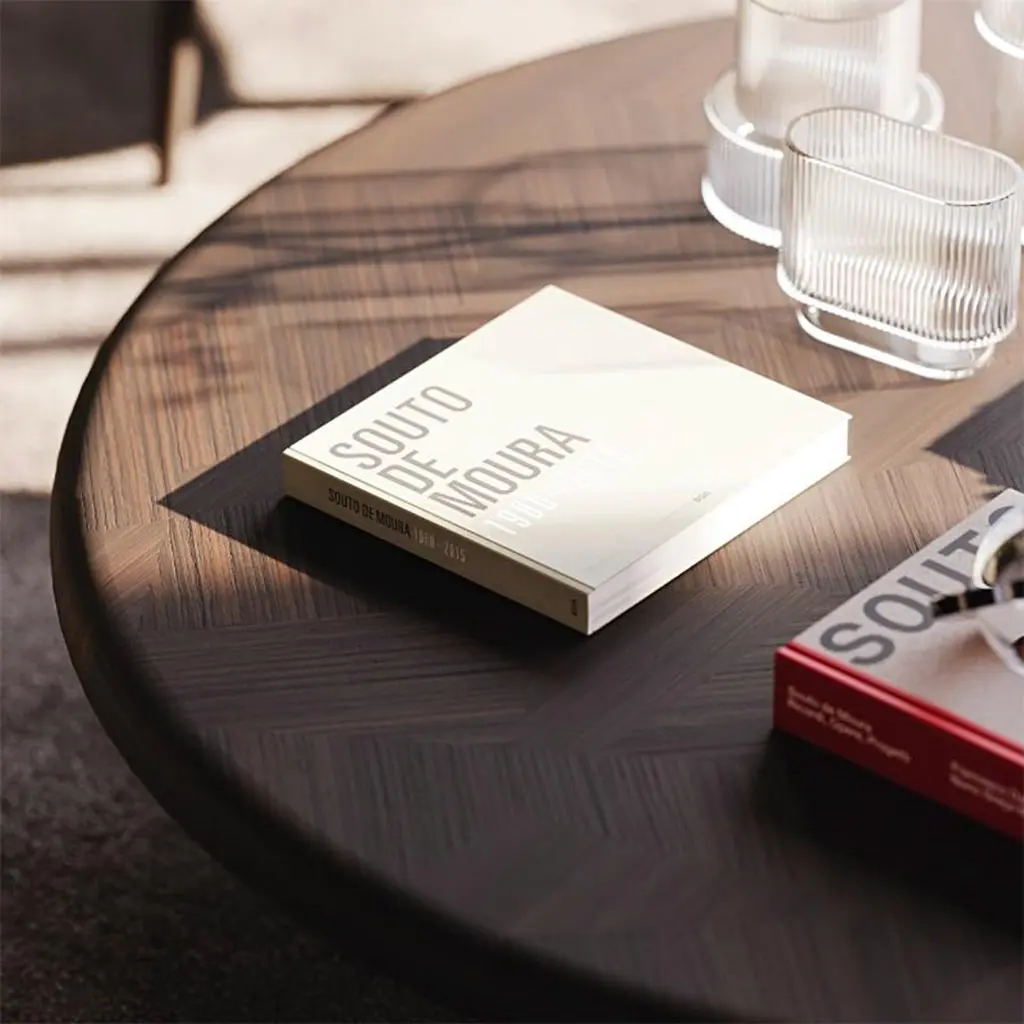 Coffee Table Rover Walnut with wooden structurein walnut veneer with with inlaid walnut top.Also available on request in grey oak matte, or natural oak, or ebony matte veneer finishes.