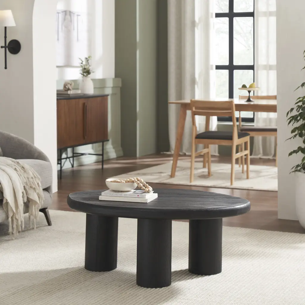 Give your design project an on-trend update with this stylish mango wood coffee table. Combining a rich matte black finish and a hand-hewn look, the result is a furniture piece with true staying power. Perfect for putting your coffee table styling skills on display, this piece will complete any contemporary space.