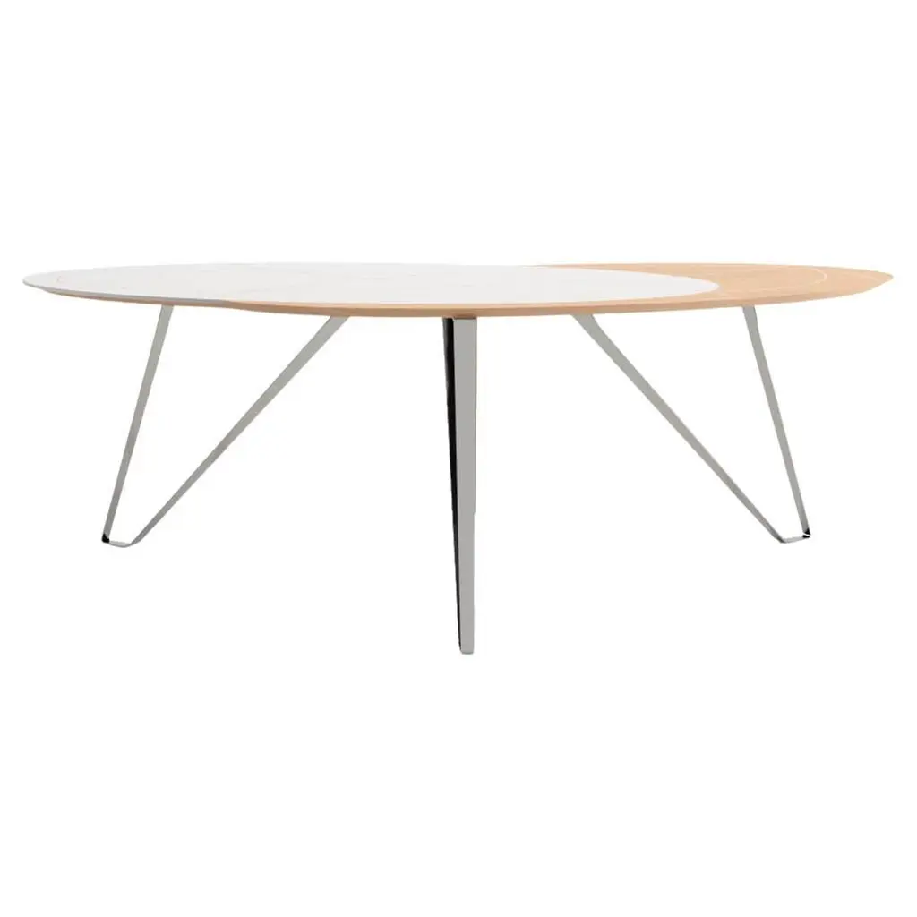 Design duo Sam Hecht & Kim Colin believe that a piece designed with a focus on its usefulness ultimately turns out beautiful. A clear example of this idea reflects in their Run Round Coffee Table from Emeco. The seed for this design came to Sam Hecht & Kim Colin when observing the welcoming, communal atmosphere created by public furniture. Like a park bench facilitates a shared experience, so does this piece in the indoor setting. It complements your home’s clean, refined aesthetic through a minimal silhouette. A beautiful play of practical materials from the aluminum legs and the wood top creates instant intrigue. The split of the circular wood top subtly connects the piece to public furniture while adding a sophisticated accent.