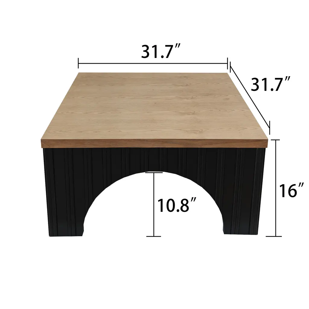 Premium Quality - Crafted from high-quality manufactured wood with a thick tabletop for a robust and long-lasting design. Unique Arched Base -The black base with stylish arch cutouts adds a modern yet rustic touch. Spacious Surface - Measuring 31.7" x 31.7" x 16", providing ample space for decor, books, or drinks. Sturdy & Durable -Thick legs and solid build ensure stability and support for everyday use. Versatile Design - Perfect for living rooms, lounges, or office spaces, complementing farmhouse, industrial, and modern interiors.