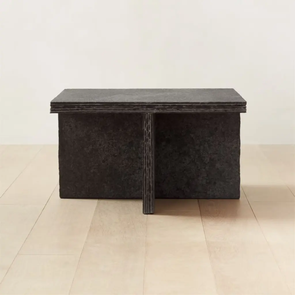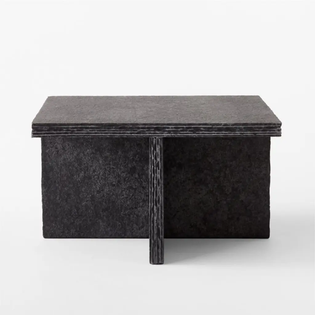 Canadian creative Evan Jerry of Studio Anansi showcases his mastery of form and function with a brilliantly simple design. Inspired by the natural materials of Brazilian modernism and the utilitarianism of Brutalist design, solid limestone table accents a variety of décor styles. Matte black finish, textured stone and hand-chiseled edges get the details right. CB2 exclusive.