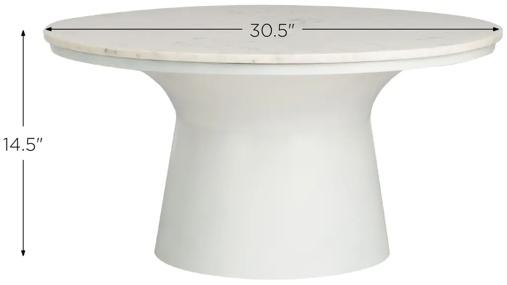 Bring high style to the living room with this bold contemporary pedestal Ruxton coffee table. Inspired by a vintage Italian find, its luxurious bright white marble top sits stop a monumental white base. An ideal canvas for displaying books, it’s a new classic.