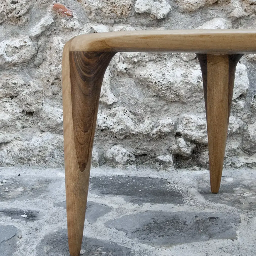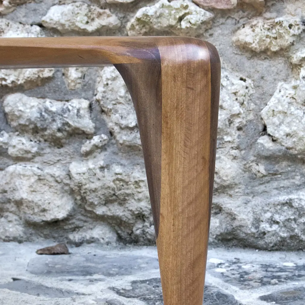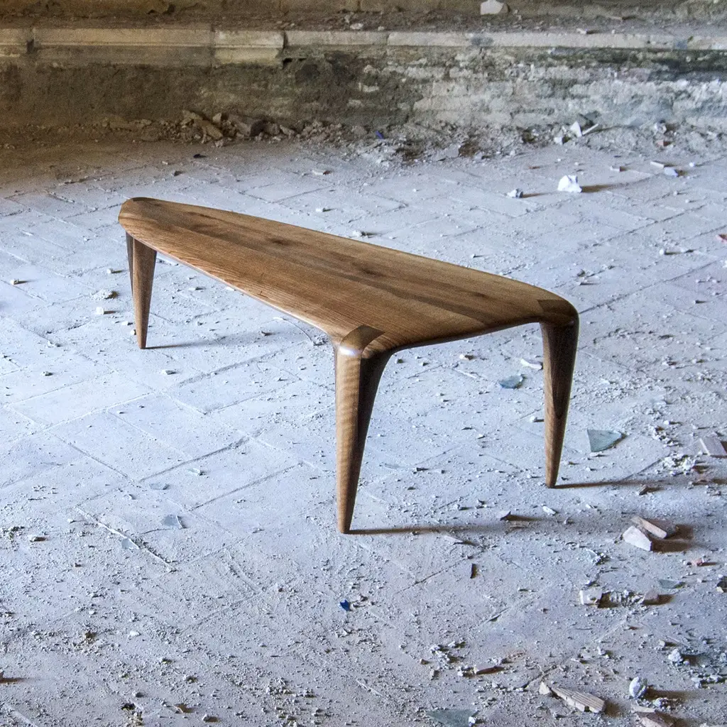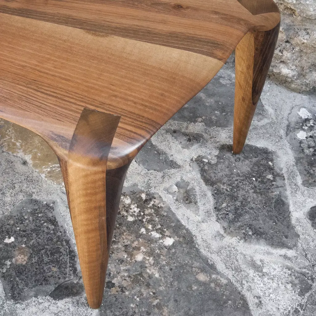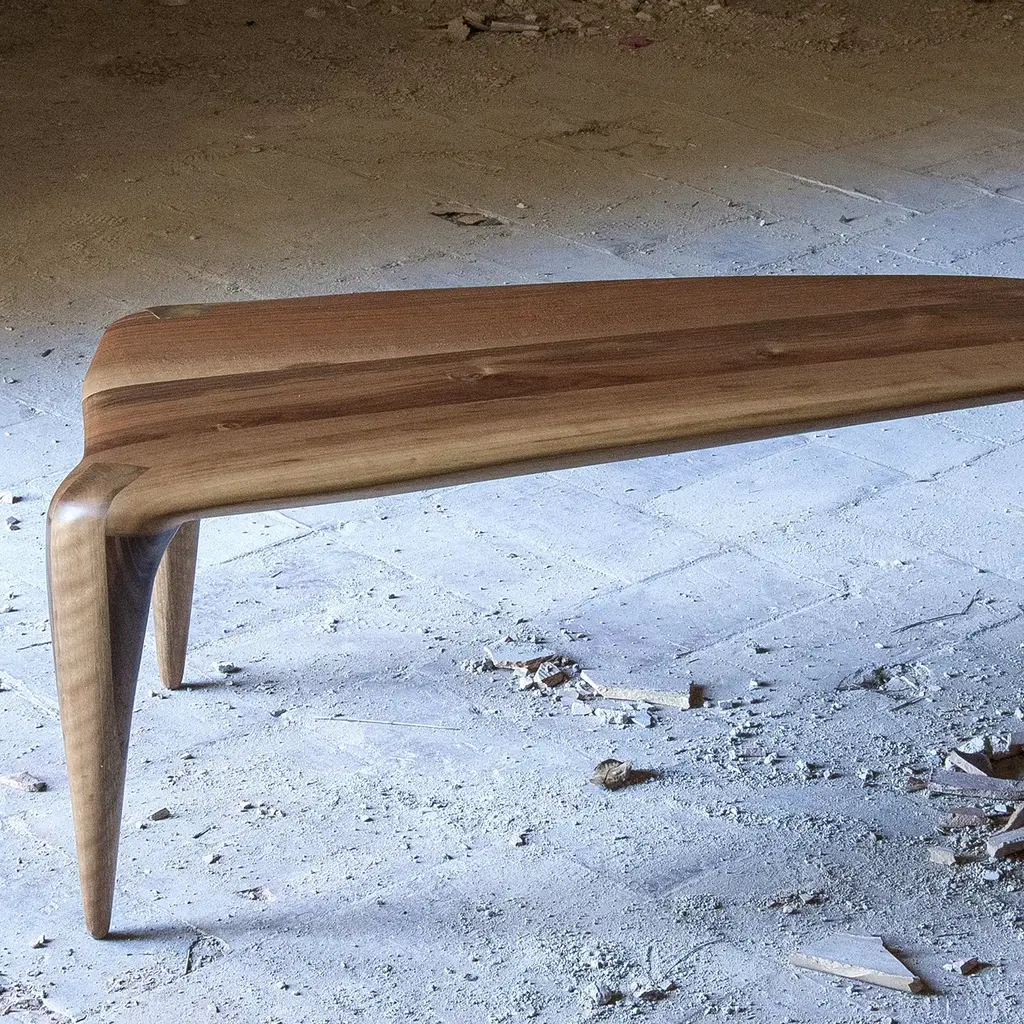 The S_Coffee Table is a small jewel of formal purity. This asymmetrical polished wing-shaped piece adds a touch of style to any environment. The three legs supporting the top are attached to it thanks to a clever interlocking work that leaves the corners smooth and rounded. It can be made in all types of solid wood available in Italy.
