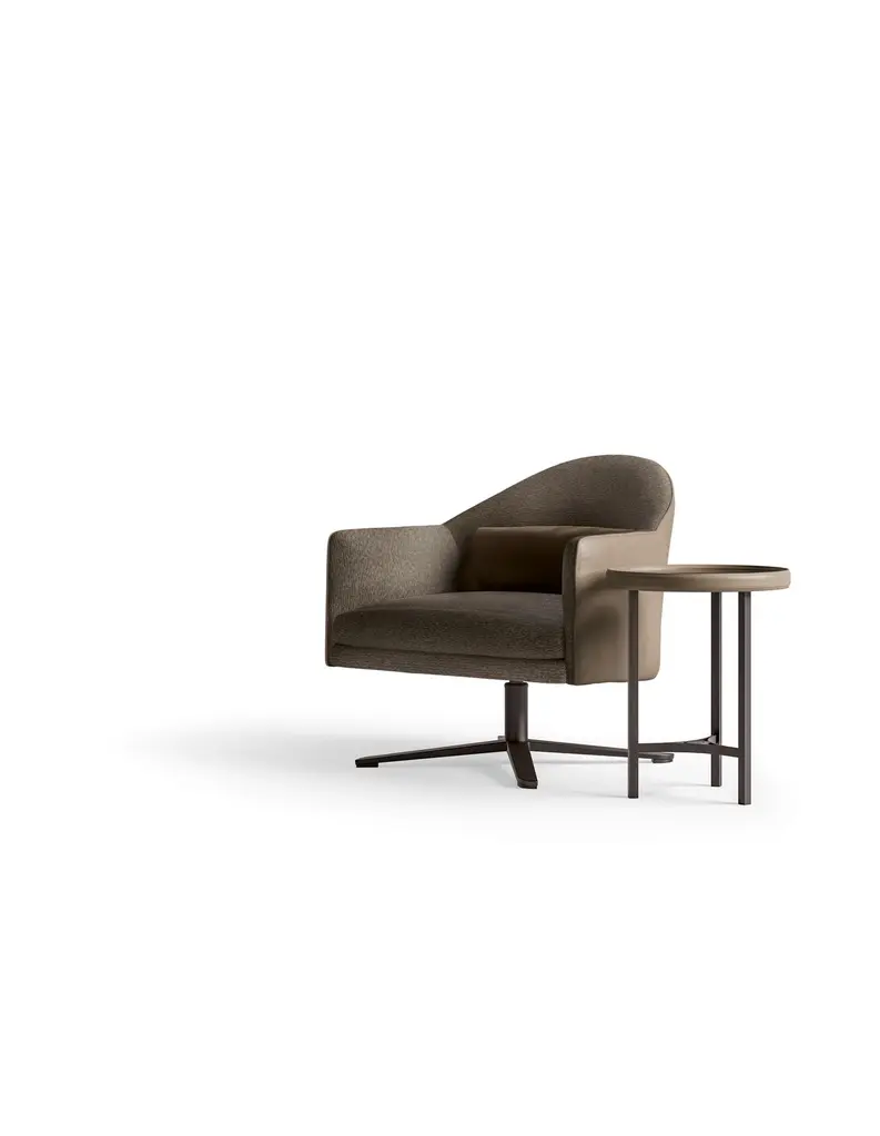 A stylish side table featuring a glass top with saddle leather-bound edges and a sleek metal base. The transparent glass surface highlight the elegant saddle leather detailing around the edges, adding a refined, tactile contrast. The sturdy metal base ensures durability while providing a modern, minimalist aesthetic. This table combines sophistication with functionality, making it a perfect addition to contemporary living spaces, offices or as a chic accent piece. The combination of materials creates a harmonious balance between luxury and practicality.