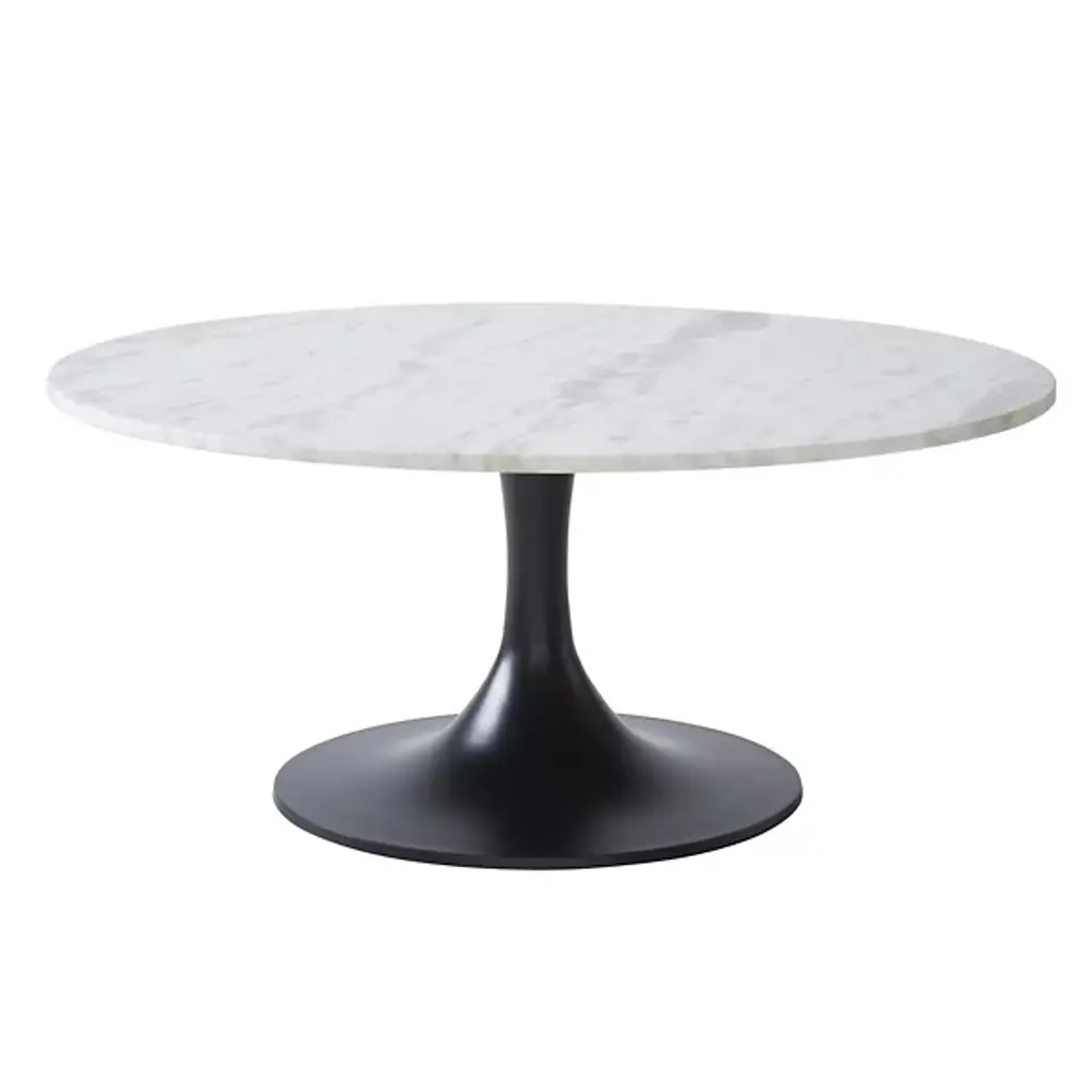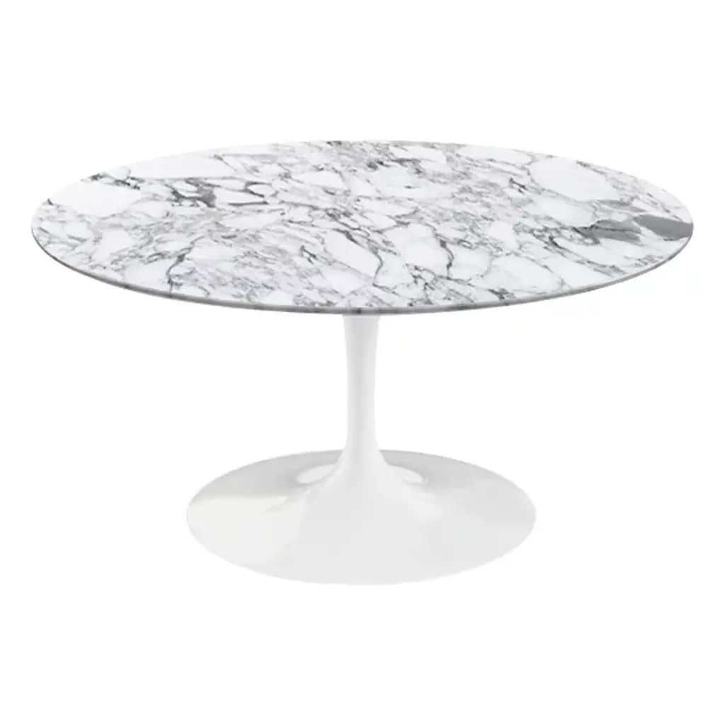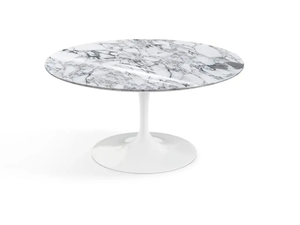 Simple and sleek, the Saarinen 35.75-Inch Round Coffee Table by Knoll was originally designed in 1956 by the iconic Eero Saarinen. Its minimalistic stem base contrasts elegantly with its sophisticated circular top. Saarinens table base is crafted from molded, cast aluminum polished and coated in a tough, abrasion-resistant Resin finish. Choose between the variety of materials and finishes containing wood, laminate, coated and natural marble and natural granite top finishes.