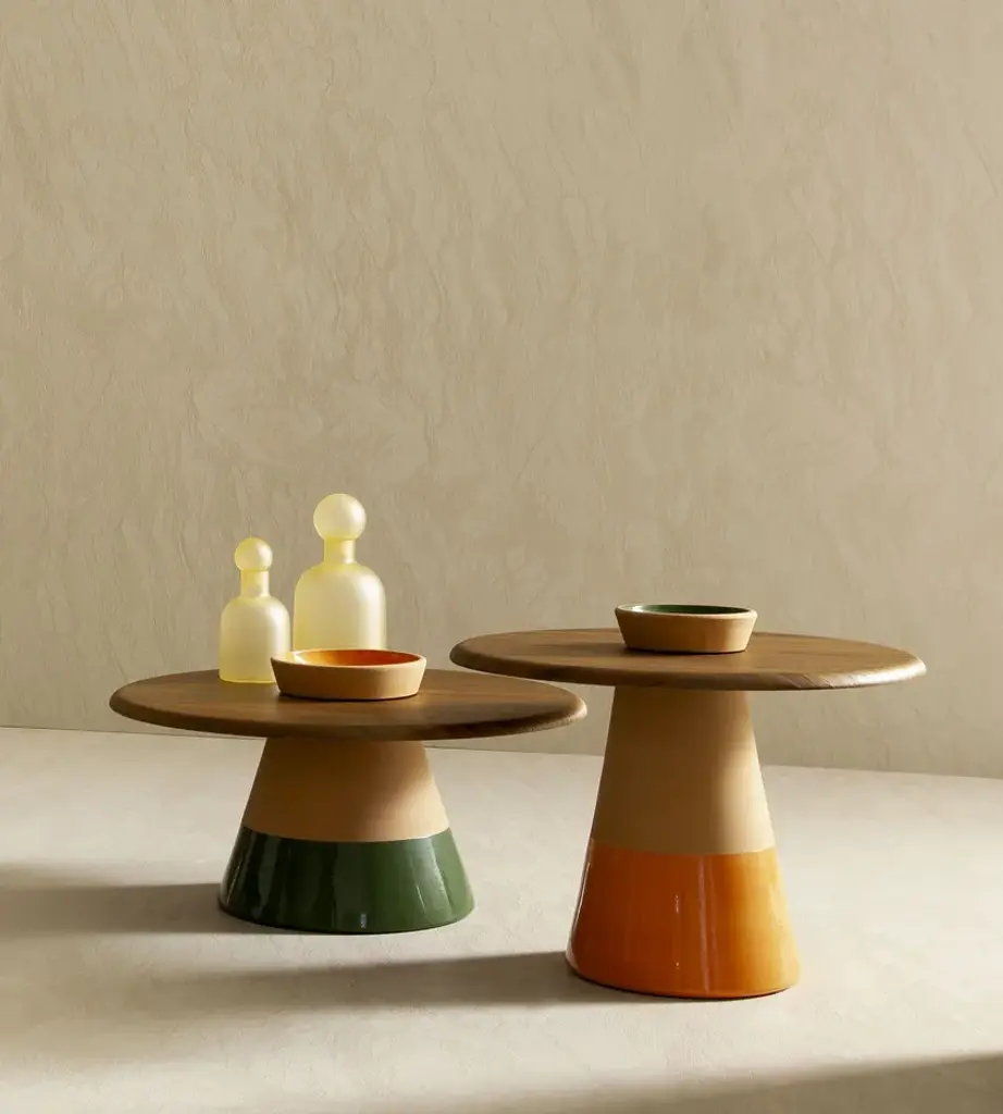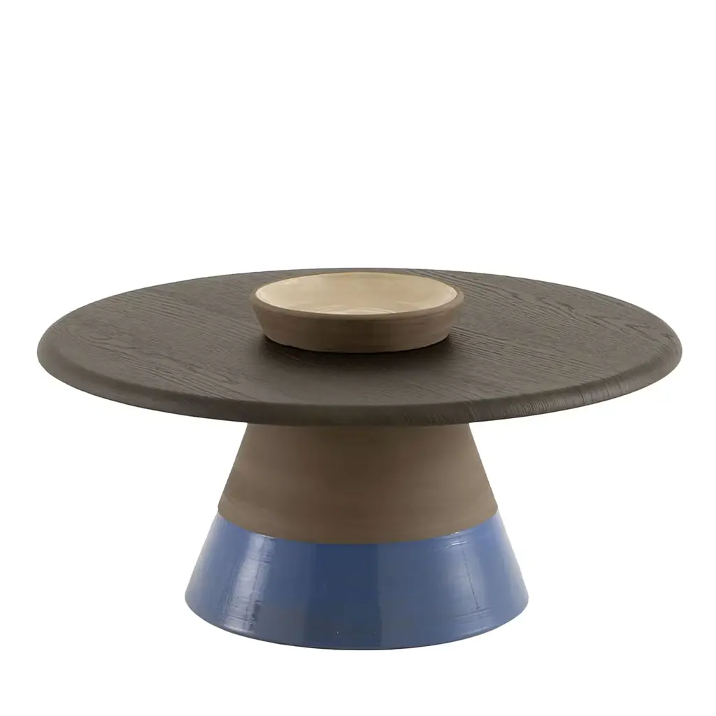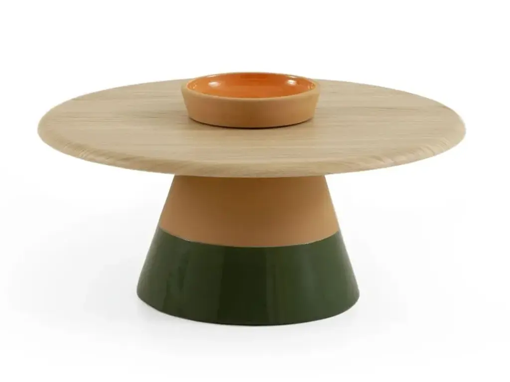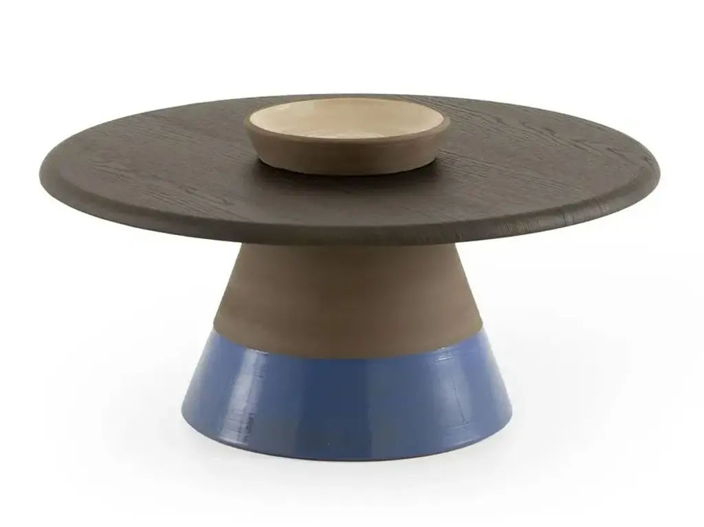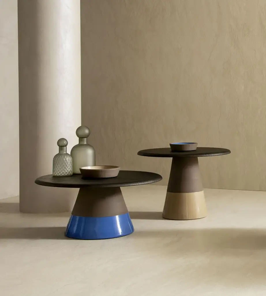 Sablier is a coffee table with a base in natural clay, lathed and decorated with high-quality glossy enamel inserts. Each table features a top made of MDF veneered with different wood finishes, crafted using membrane press technique for a flawless finish. The storage compartment, made of terracotta, has an internal enameled insert that adds a contrasting color and elegant touch to the overall design.HM.SAB.DM.NC.AR.AM.VM: Base in terracotta with glossy Mandarin Orange enamel and MDF top veneered with Canaletto walnut.HM.SAB.DM.RL.AS.AZ.DV: Base in dark clay with glossy Dove Gray enamel and MDF top veneered with Laguna oak.HM.SAB.DM.RN.AR.AM.VM: Base in terracotta with glossy Mandarin Orange enamel and MDF top veneered with Natural oak.HM.SAB.DP.NC.AR.AM.VM: Base in terracotta with glossy Mandarin Orange enamel and MDF top veneered with Canaletto walnut.HM.SAB.DP.RL.AS.AZ.DV: Base in dark clay with glossy Azure enamel and MDF top veneered with Laguna oak.HM.SAB.DP.RN.AR.AM.VM: Base in terracotta with glossy Mandarin Orange enamel and MDF top veneered with Natural oak.Haute Couture gets its inspiration from high fashion, where stitching, workmanship and materials are at the core of the design. Dressers are outfitted using hand-crafted leather, the furniture is embellished using precious marble, and the wood is selected on the basis of its grain. The synthesis of this collection is a modern line with a contemporary slant that is embodied in a luxury that is not overly flashy but grounded in sophistication. Timeless products made with high quality materials and handcrafted in Italy.