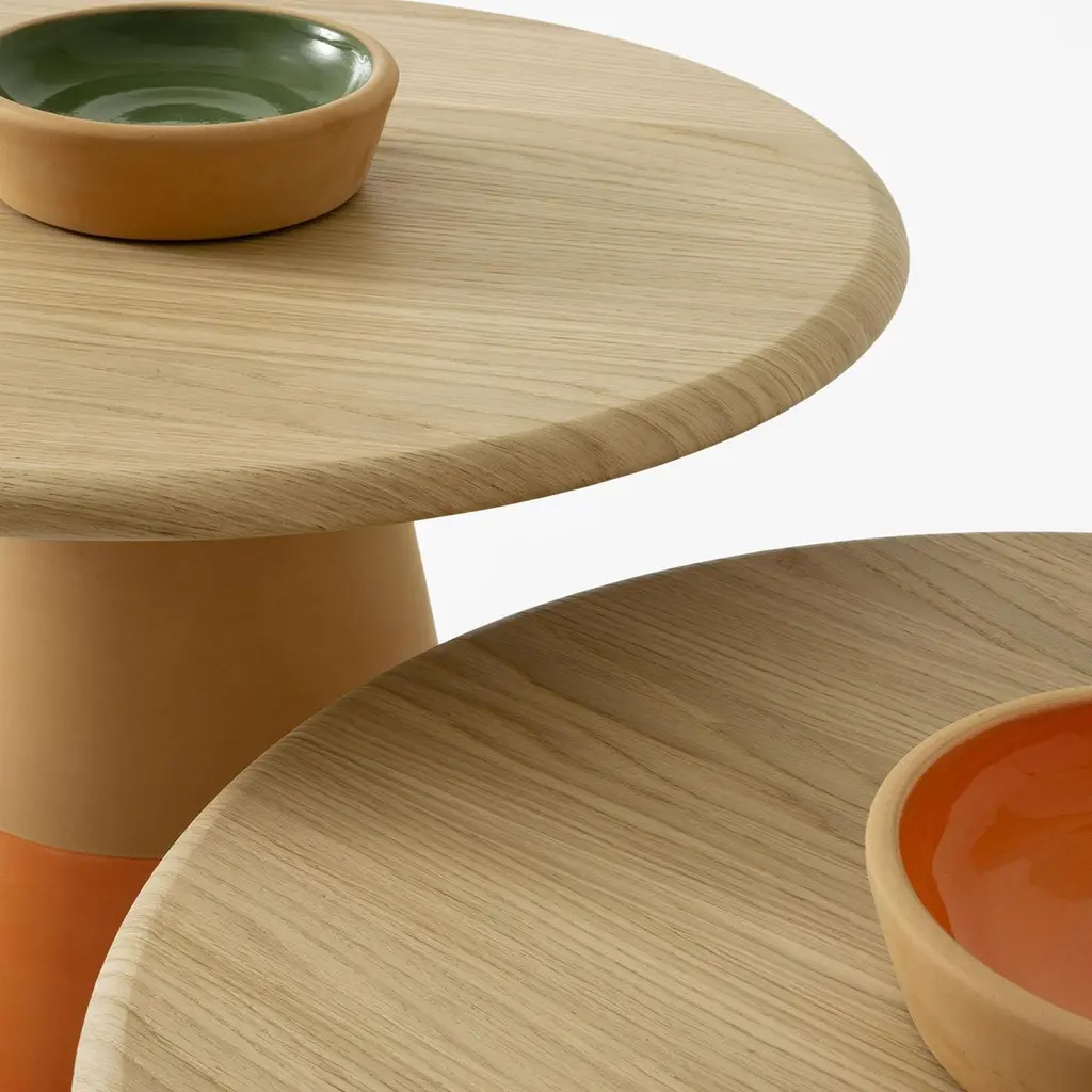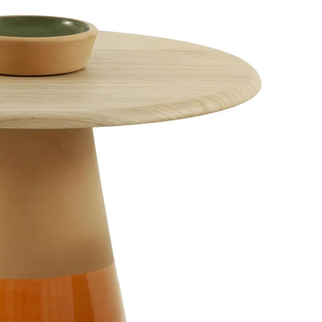 Sablier Tall Table With Clay Base & Oak Veneer Top By Morica Design