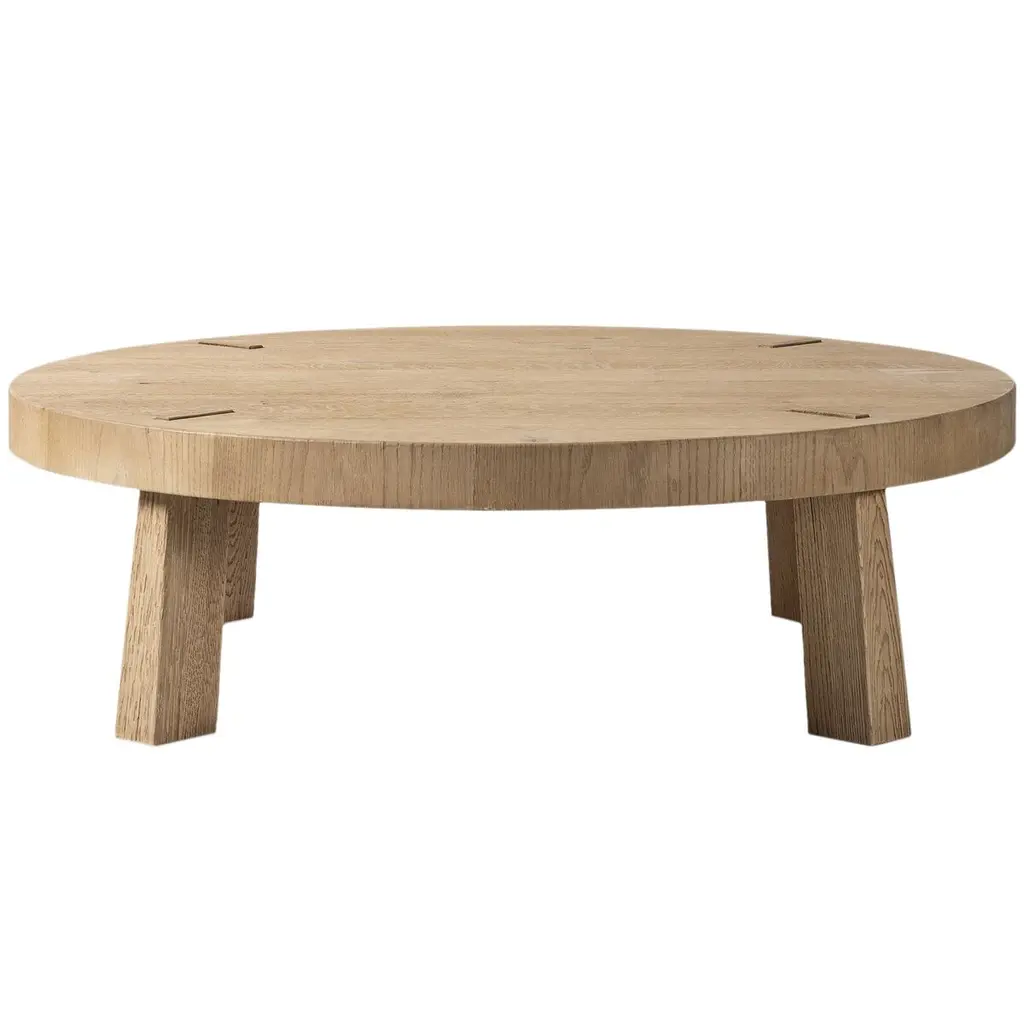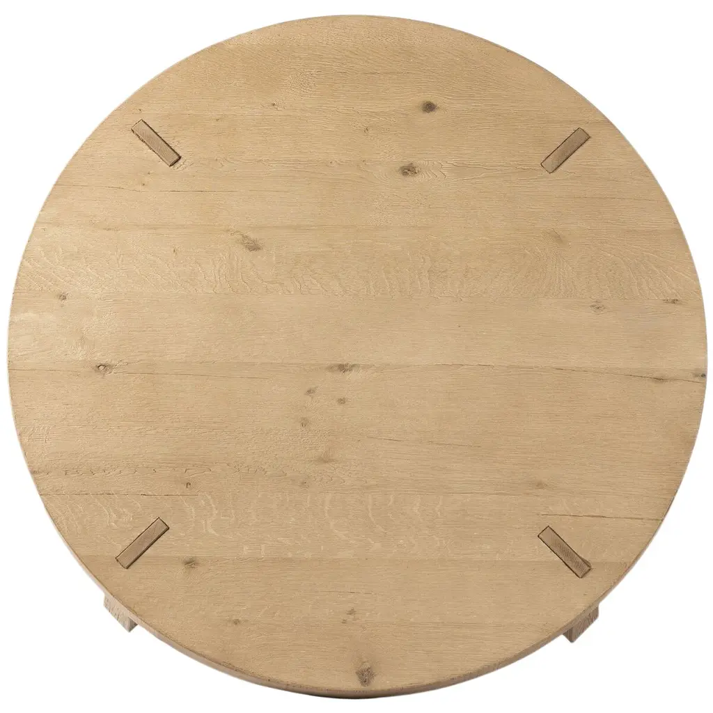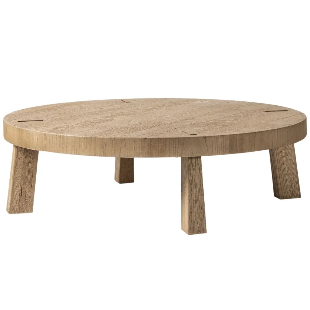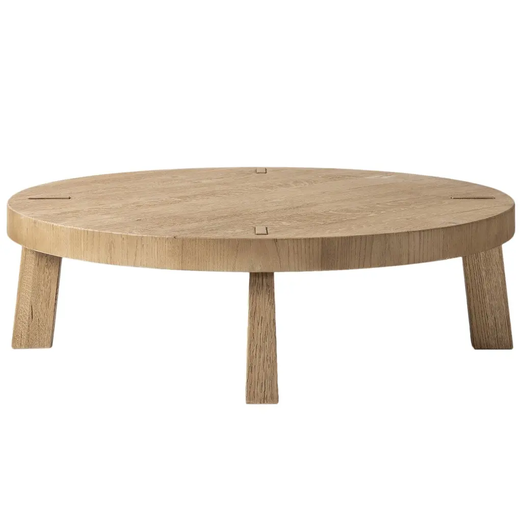 Inspired by large-scale Swedish folk design, this coffee table serves as a bold, antiqued centerpiece for any living room. Crafted with a beautifully distressed, thick oak veneer, it features pull-through legs with exposed joinery for an authentic look. This piece is a result of a design collaboration by Amber Lewis and Four Hands.
