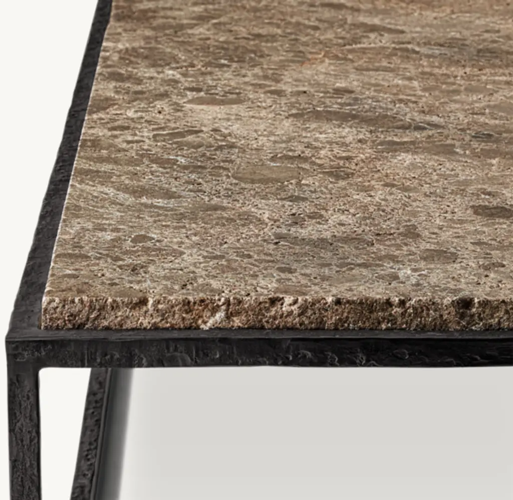 Designed by the Van Thiels, Salvador pays homage to the craftsmanship and refined sensibility that characterized 1940s French design. The frame is handcrafted from solid iron that is cast and hand-forged by artisans to create an organic texture with distinctive highs and lows. Each piece is paired with a natural stone top that is sandblasted for a weathered patina. SHOP THE ENTIRE COLLECTION