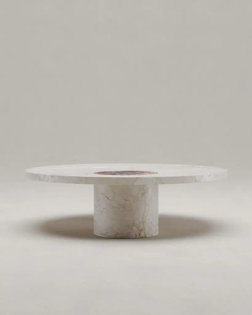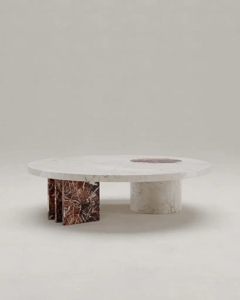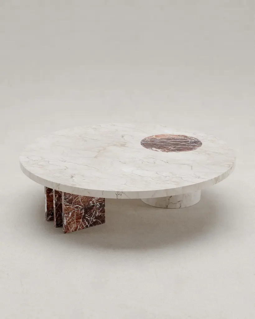 Salvante C1 coffee table by Piotr DabrowaUnique PieceDimensions: D 120 x H 34 cmMaterials: Calacata marble, Rosa Peralba marble.Also available: Calacatta Viola marble, walnut burl marble.Salvante coffee table is a play between shapes & materials. Round and rectangular forms are in dialogue with each other to create harmony of shapes that balances between art & design. The table was presented together with the Faith 01 hanging lamp at Motel D, Diorama’s creative space, located at Viale Caldara, 13, Milano during MILAN DESIGN WEEK 2021.Piotr Dabrowa (1990). Multidisciplinary Designer focused on the collectible design of lighting & furniture.He creates imagination-driven products in modern, clean aesthetics & functional form. The works convey a deep love for the art of living and give its users a unique experience, sensual pleasures and constitute the visual character of an interior. Surreal & forward-looking still-life visuals showcasing the products are complementing their uniqueness by giving them a new dimension in the digital world.From 2011 he was working in the Graphic Design field and later in the product design field in Poland and in China. To focus on his ideas, he established Studio-Dabrowa in 2020. He works on developing, bringing to life collectible designs and cooperating with factories in Asia and in Europe while completing his Master’s Degree at the Academy of Fine Arts in Wroclaw. His works are available through selected Galleries.
