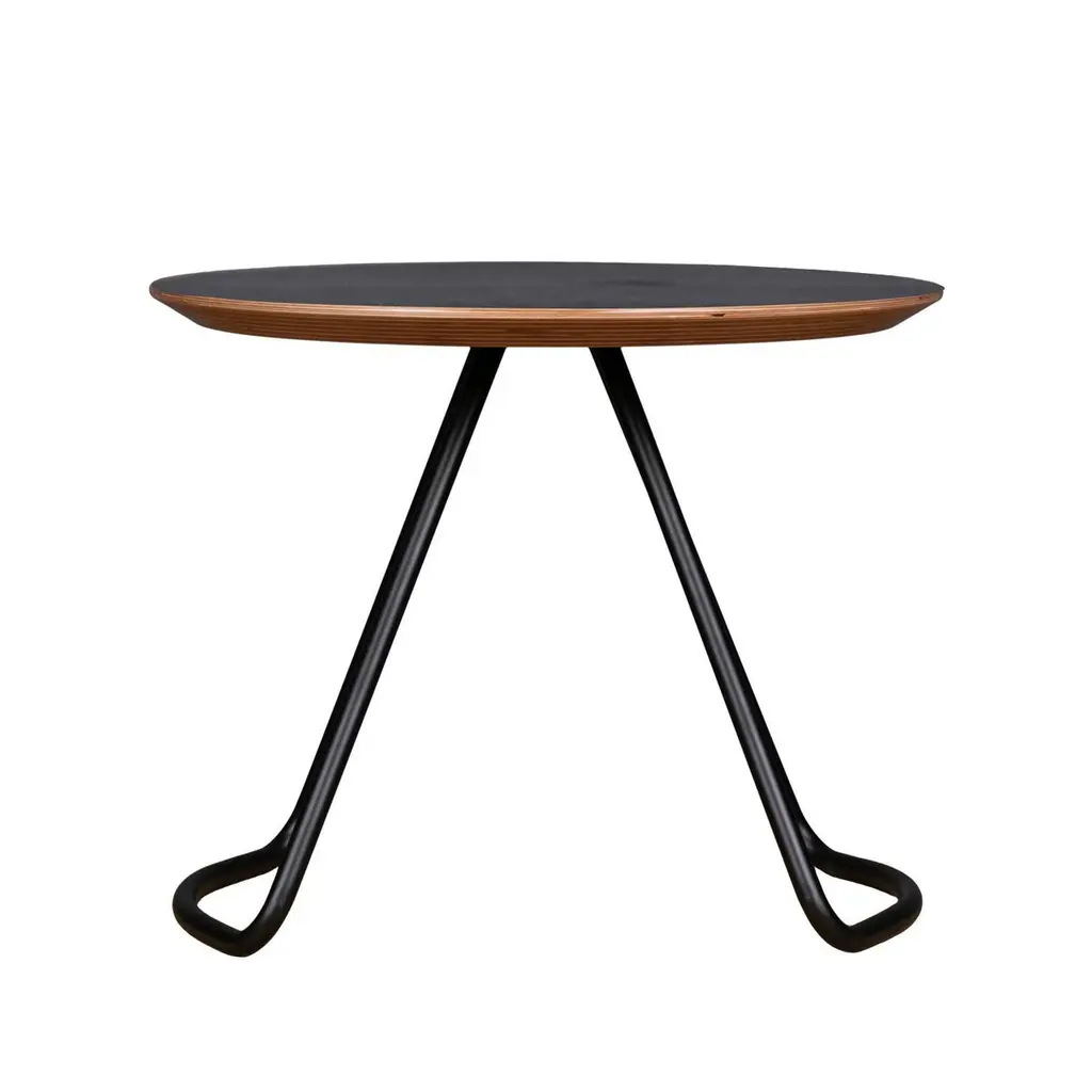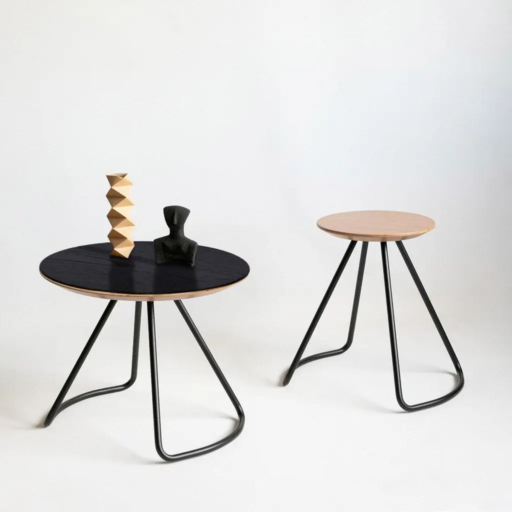 Sama coffee table is part of the Sama collection, which provides functionality through simple, yet striking and sculptural forms that add a unique and elegant touch to its environment.Inspired by the poetry of whirling costumes worn in Sama ceremonies, the design plays with the geometry of conic sections and makes use of metal bending processes to reinterpret this cultural inspiration through minimal forms that provide a unique touch to living spaces. Produced by skilled wood and metal craftsmen, the collection stands at the intersection of craft production and modern design. With its minimal design and strong visual effect, Sama collection provides functionality, emotional experience and uniqueness.Sama Collection received Silver A' Design Award in 2020 and Design Turkey Superior Design Award in 2019. Material: High quality oak veneer on birch plywood and powder coated metalDimensions: W 50 cm, D 50 cm, H 40 cm, table diameter: 50 cm.