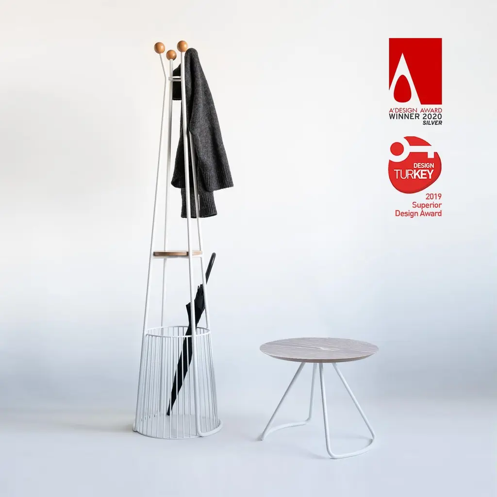 Sama coffee table is part of the Sama collection, which provides functionality through simple, yet striking and sculptural forms that add a unique and elegant touch to its environment.Inspired by the poetry of whirling costumes worn in Sama ceremonies, the design plays with the geometry of conic sections and makes use of metal bending processes to reinterpret this cultural inspiration through minimal forms that provide a unique touch to living spaces. Produced by skilled wood and metal craftsmen, the collection stands at the intersection of craft production and modern design. With its minimal design and strong visual effect, Sama collection provides functionality, emotional experience and uniqueness.Sama Collection received Silver A' Design Award in 2020 and Design Turkey Superior Design Award in 2019. Material: High quality oak veneer on birch plywood and powder coated metalDimensions: W 50 cm, D 50 cm, H 40 cm, table diameter 50 cm.