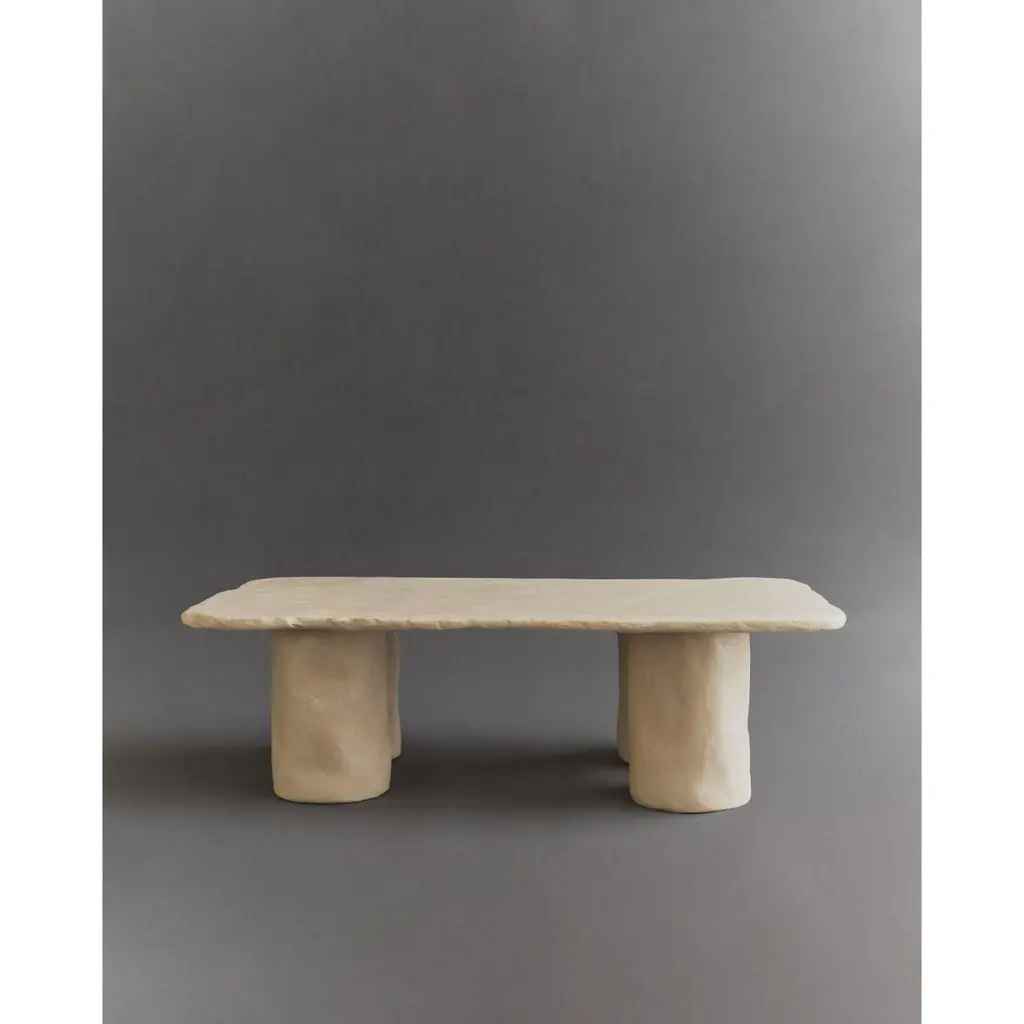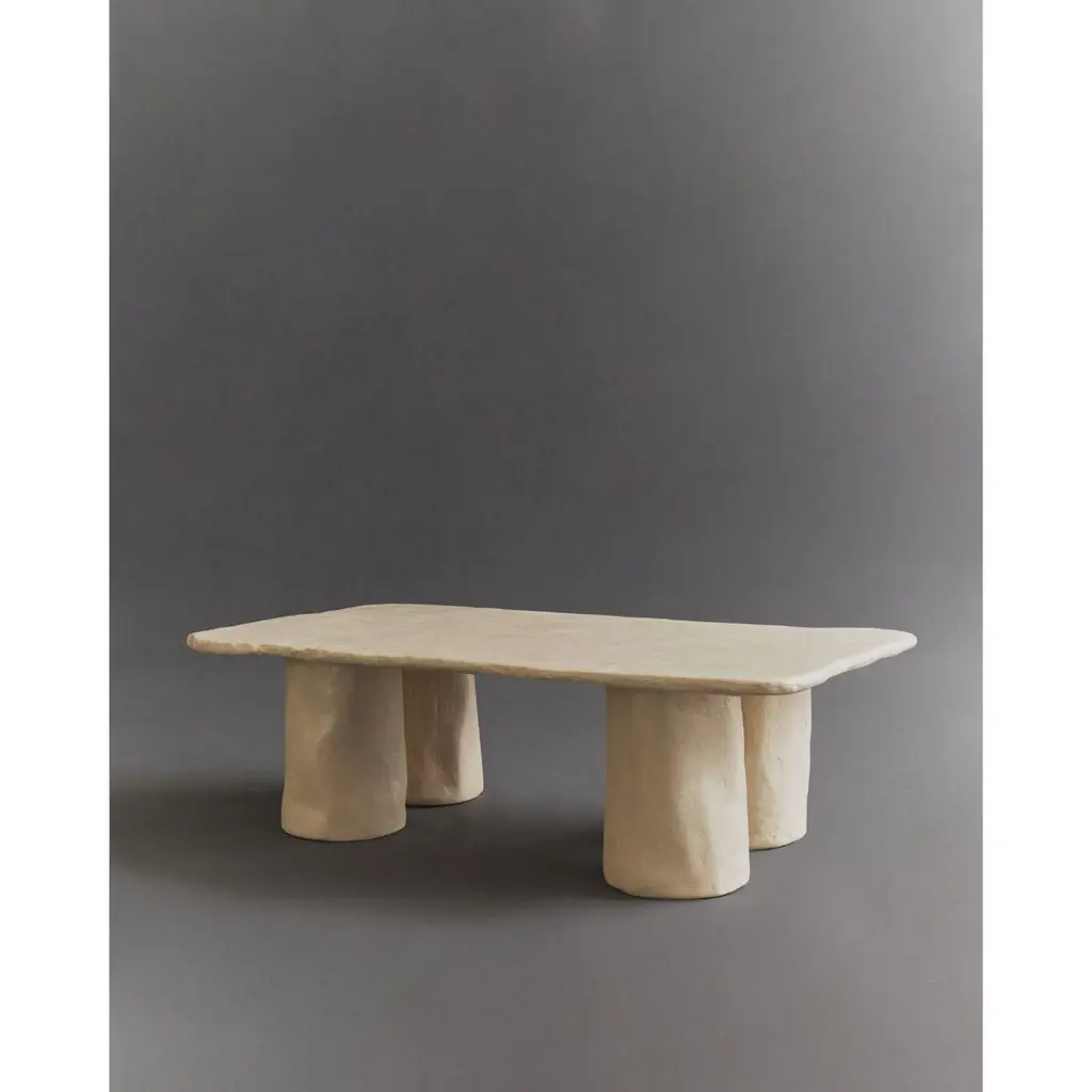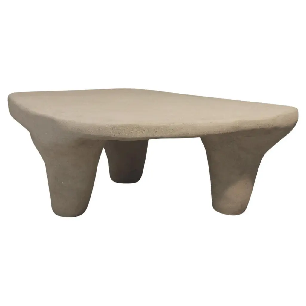 Sand coffee table by OmbiaDimensions: W 122 x D 71.5 x H 38 cmMaterials: Mix media, sand limewash finish. Custom sizes and finishes upon request.Ombia is a ceramic sculpture and design studio based in Los Angeles. The name and its roots originates from Colombia, where designer and founder Cristina Moreno comes from. She hand sculpts every piece, inspired by the dedicated artisans and craftsmanship of her country. Each piece holds a unique expression that inspires the everyday.Cristina's approach to furniture design is centered around celebrating the organic and imperfect, creating pieces that embody the beauty of handcrafted design. Each piece is carefully made by hand, imbuing it with a unique character and warmth. Ombia embodies texture, unconventional forms, proportions and attention to detail. Inspired to give a moment of pause, these creations will elevate and provide sanctuary to the home.