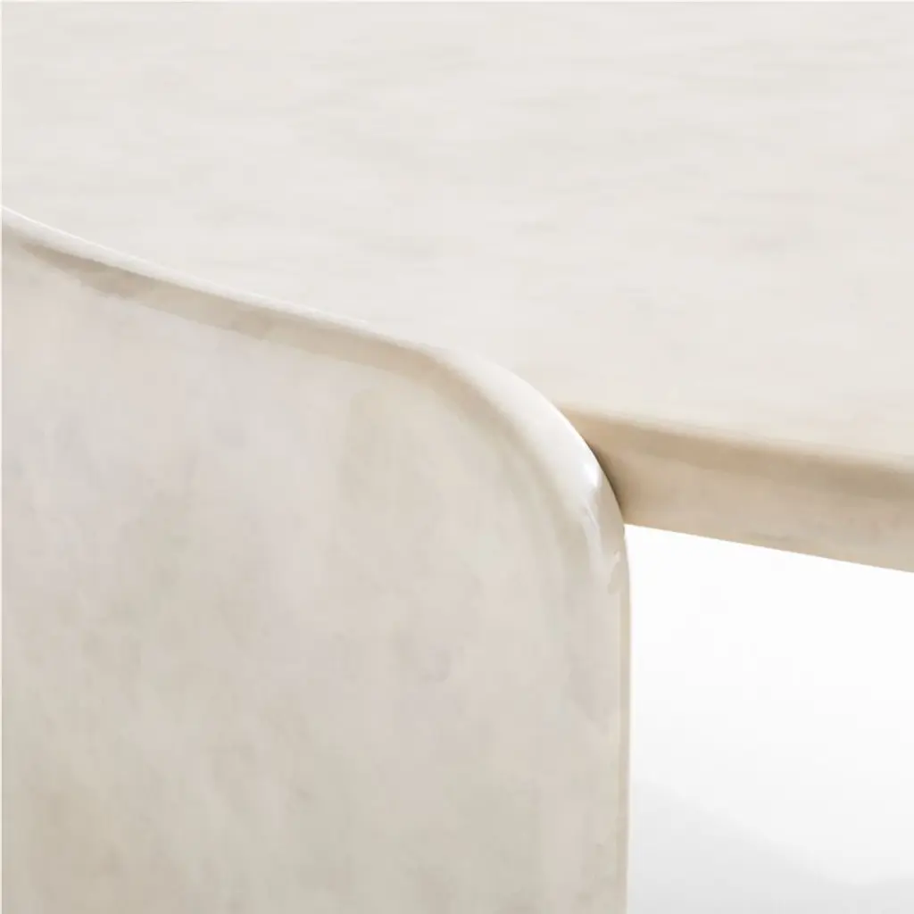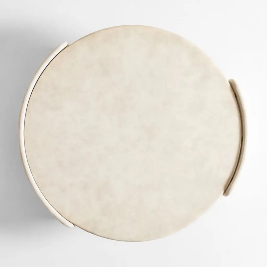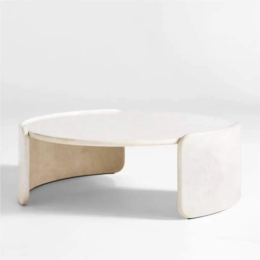 Minimalist with maximum impact, this coffee table instantly updates your living space. Curved slabs hug the generously sized round top for a floating look, with bullnose edges that soften the contours. Enhancing its sculptural silhouette, the concrete table is hand-finished in a high-gloss light putty tadelakt-style finish, a time-honored plaster technique with roots in Morocco that offers a slightly textured finish with beautiful tonal variations.Exclusive collaboration! L.A.-based star designer Brigette Romanek redefines design rules as only she can, with playfully unexpected forms to bring you the fresh look her A-list clients love.