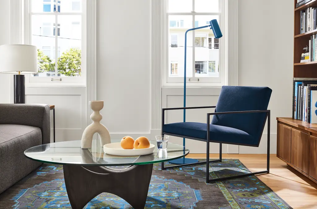 The sculptural shape of our Sanders coffee table is inspired by mid-century design. Thick slabs of solid wood are shaped by master Vermont woodworkers into fluid shapes with rounded bull-nose edges, giving Sanders a stunning silhouette. A tempered glass tabletop showcases the distinctive base.