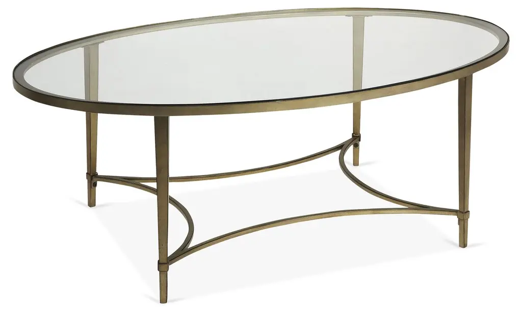 At home in virtually any style of decor, this coffee table is hand-forged of iron with an Italian-style silhouette, elegantly curved stretcher, and inset beveled-glass top.