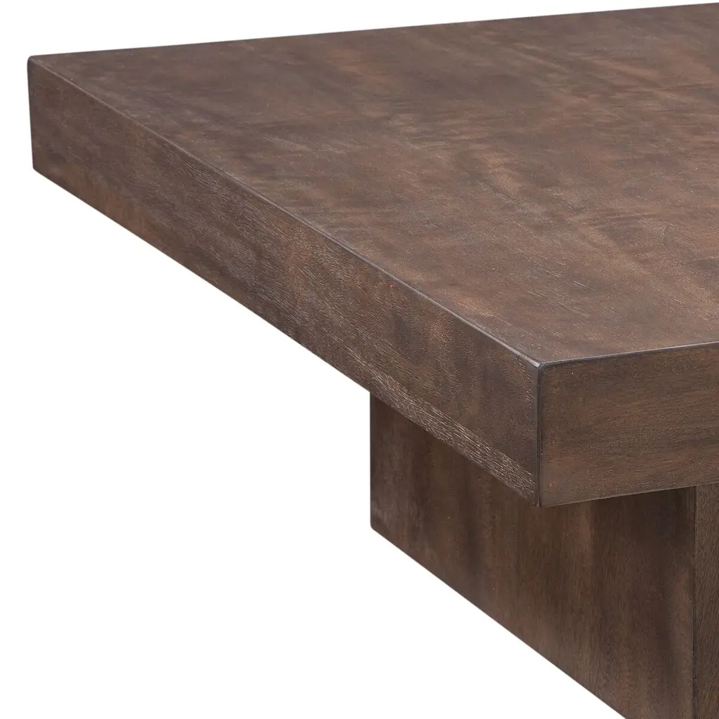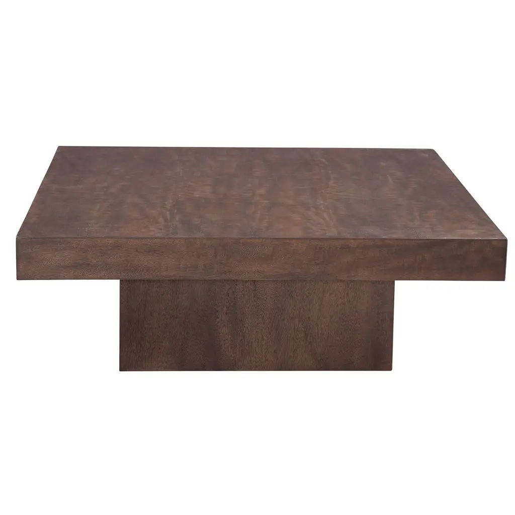 The Saskia Cocktail Table exudes modern sophistication with its minimalist design and clean lines. Crafted from solid wood and mango veneers, this table adds a touch of elegance to any space. Its surface complements its sturdy construction, making it a stylish and functional addition to any space.