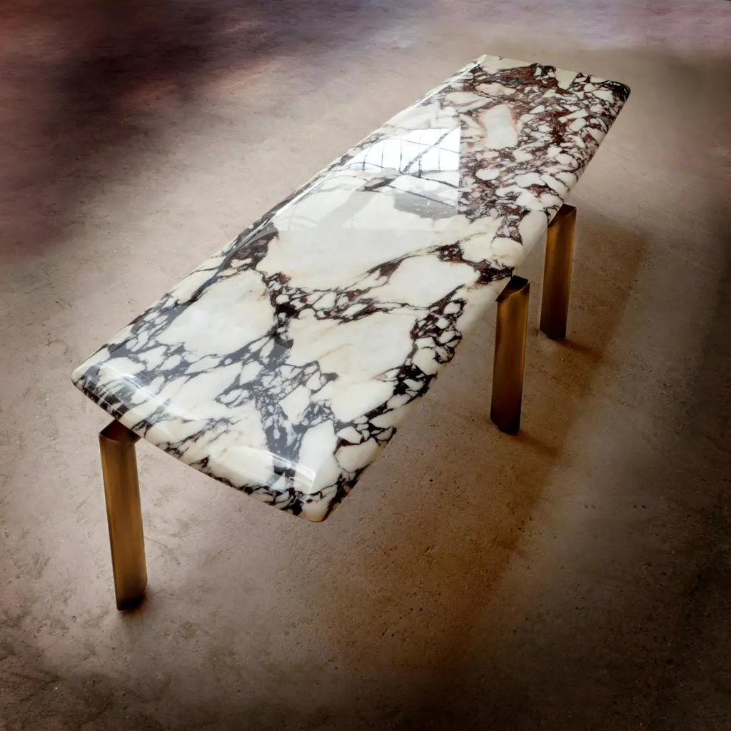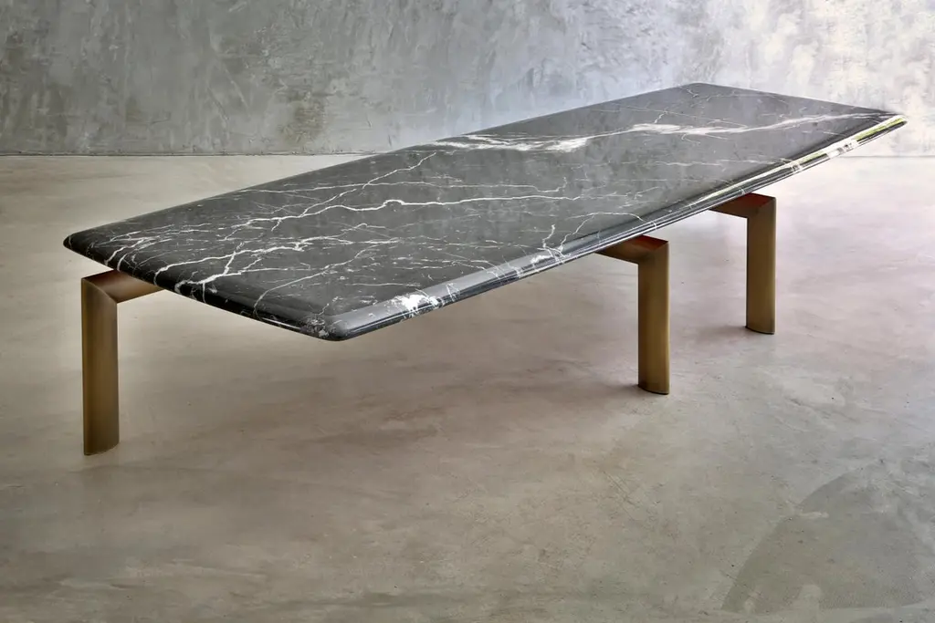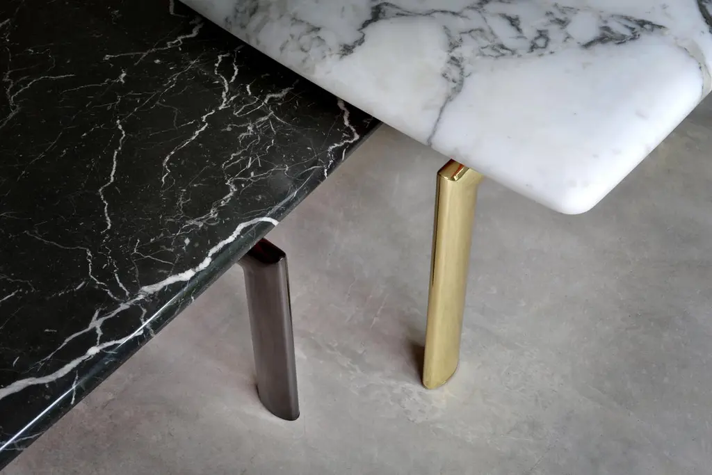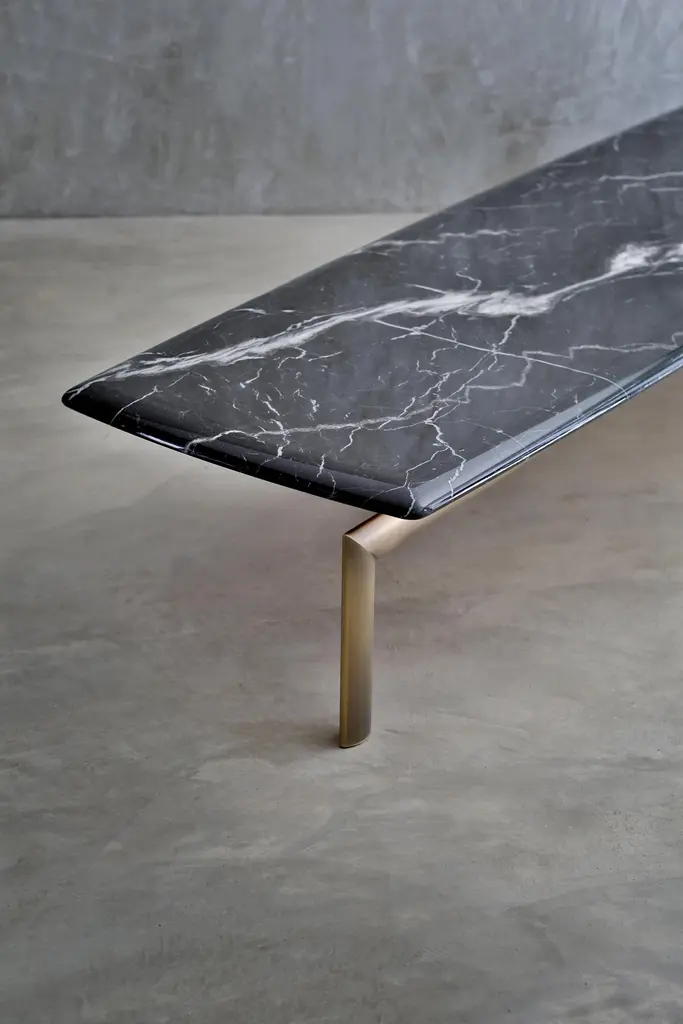 Sasso 200 Statuario Marble And Light Bronze Metal Coffee Table by Casa Casati Dimensions: D 64 x W 200 x H 36 cm. Materials: Metal and marble.Available in different materials and size options. Please contact us.The asymmetry of the metal oval section structure is the principal characteristic of the base, over which cantilevers, seemingly without obeying gravity, heavy slabs of marble or lacquered wood, theedges gently rounded like stones washed by a river, from which the table takes its name. To obtain this particular curve, the Sasso table is made from marble of more than usual thickness, each piece selected specifically for that table, to accentuate the marble veining and its natural beauty in harmony with the different sizes of table. Both the marble and wood tops are finished in polyester lacquer to guarantee the maximum protection from spills and abrasions, and are held by a chamfered support in the signature Casa Casati Orange. The different heights of the pieces allow the tables to be arranged in large dynamic groups.Atelier Casa Casati. Italian Lifestyle. Italian Skill. Italian Furniture.Excellence of materials, love of detail, creativity. This sums up the design philosophy of CASA CASATI. The atelier was created in 2016 by architects Bosco Fair and Emanuele Genuizzi, who, following years of experience in the field of interior and product design, bring to this project the cultural and aesthetic values of the highest Italian tradition. A tradition that takes form thanks to the work of the most qualified artisans of Brianza. It is in their hands that the “Italian Dream” becomes reality. It’s their skill which gives life to unique pieces, characterized by precious materials, sophisticated finishes, and unusual combinations which never fail to surprise. Thanks to the use of natural materials and expert manual labour, each of the CASA CASATI pieces has its own ethos, showing specific characteristics which highlight their value as unique pieces. Special interior projects and limited edition pieces can be developed upon request.CASA CASATI: classic elegance and a contemporary aesthetic mix together to create something indisputably of its time.