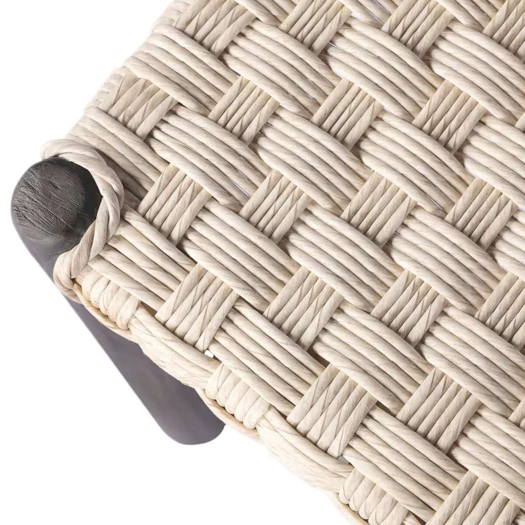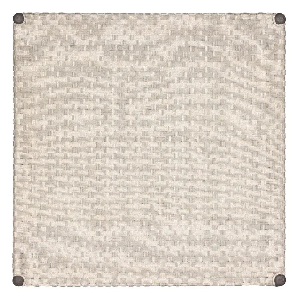 Exaggerated tapered legs support the top of this outdoor coffee table, finished with a chunky box weave. Cover or store inside during inclement weather and when not in use.