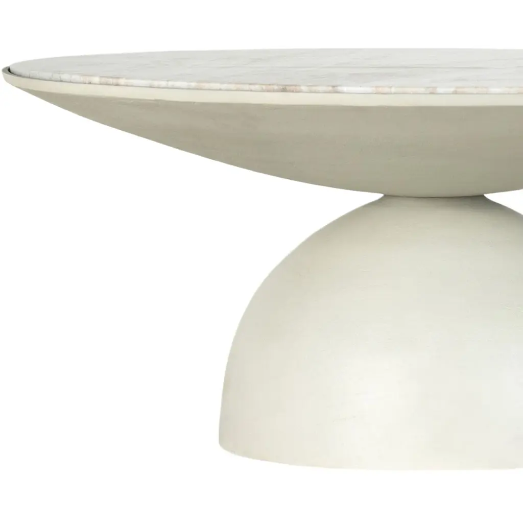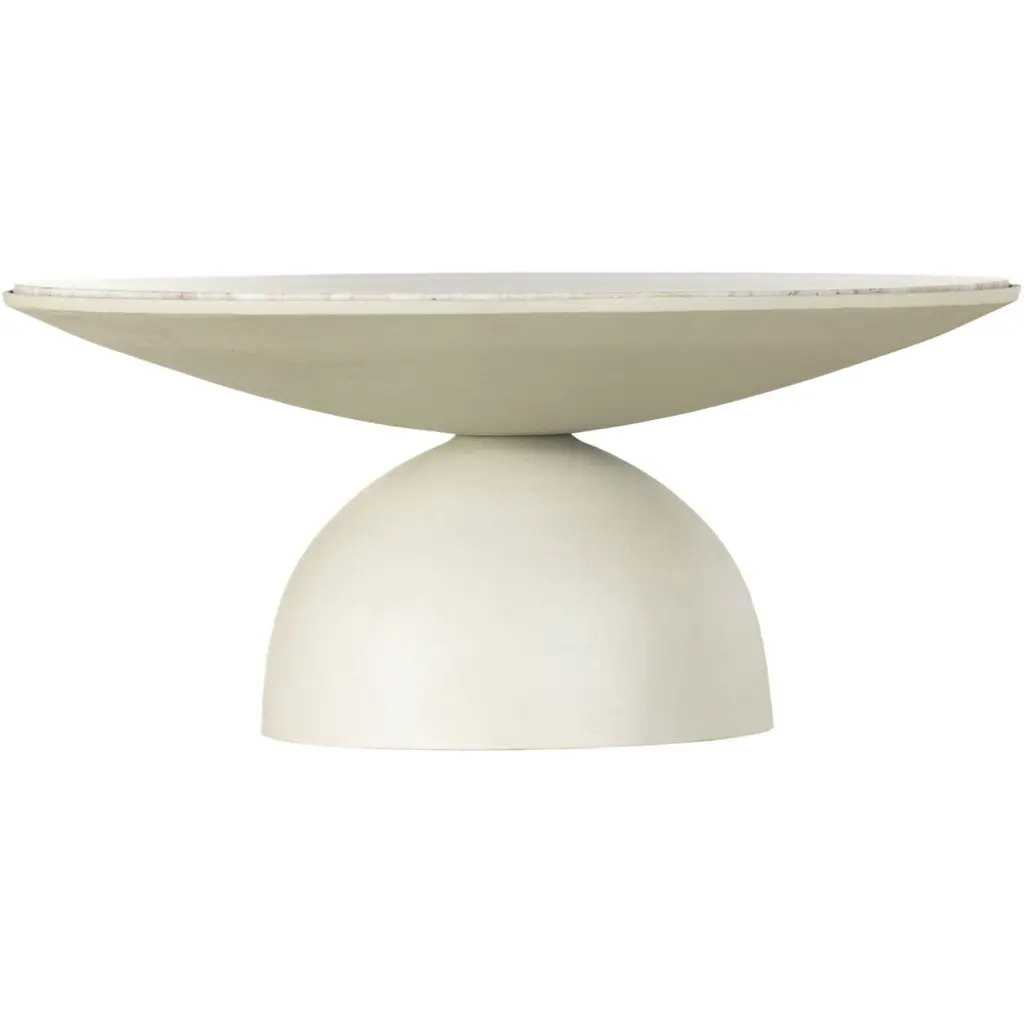 The Sawyer Coffee Table is a stunning piece that embodies a sculptural play on shape. Its robust aluminum base, available in various finishes, supports a grand, rounded tabletop crafted from exquisite marble. Each marble top showcases beautiful natural veining, making every table unique and adding a touch of elegance to any living space.