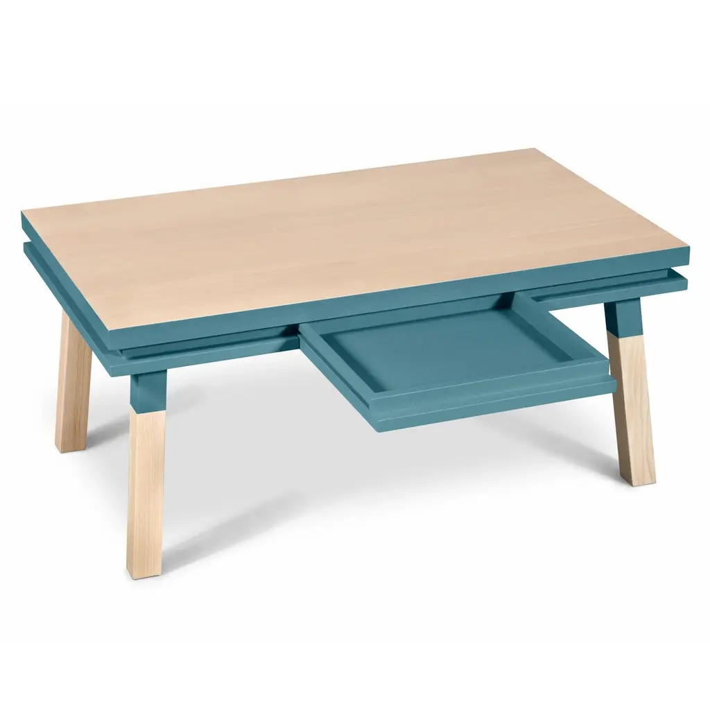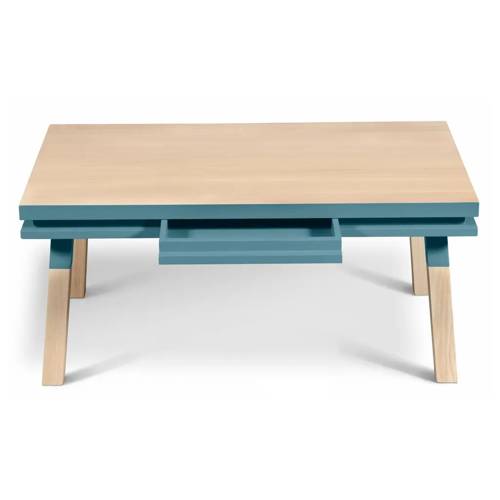 Rectangular coffee table made of 100% solid ash wood from sustainably managed French Forests1 wooden drawer is integrated into the beltThis piece of furniture is part of the ÉGÉE collection, designed by the Parisian designer Eric GIZARD who adopts the refined codes of Scandinavian design combining natural materials, elegance and sobriety of lines by adding very beautiful muted and "trendy" colors.MON PETIT MEUBLE FRANCAIS provides you exclusively with 100% Made in France pieces of furniture.