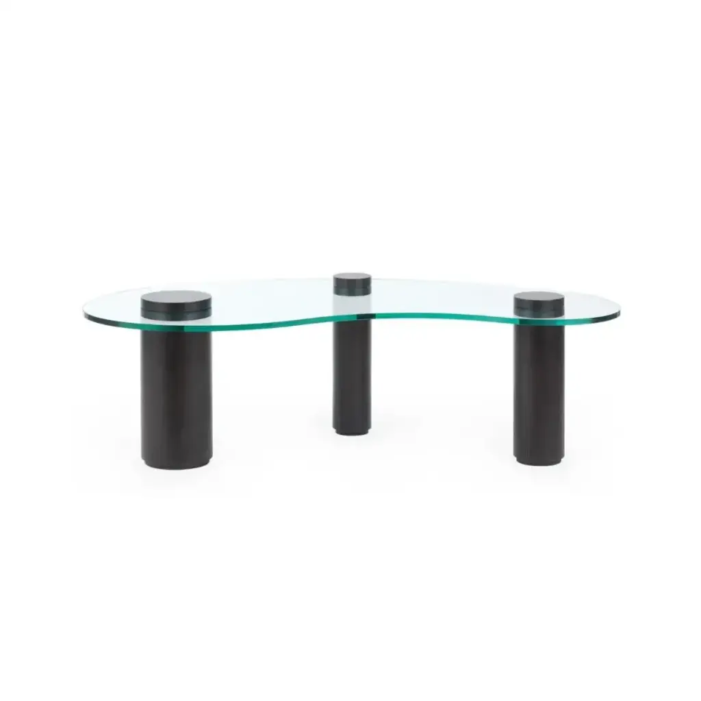 The Scarlotti Coffee Table draws inspiration from 1960s Italian aesthetics and embodies sleek simplicity with its organic contours. Its tempered glass top is gracefully upheld by three columns of varying proportions, creating a captivating visual allure. Effortlessly blending relaxed vibes with a touch of luxury, it adds playful movement to any space. Available in two sizes, The Scarlotti Collection offers versatility, allowing you to mix and match for a personalized look in your home.