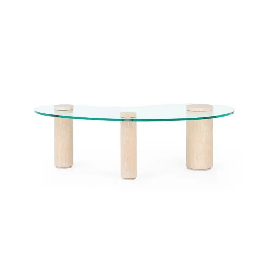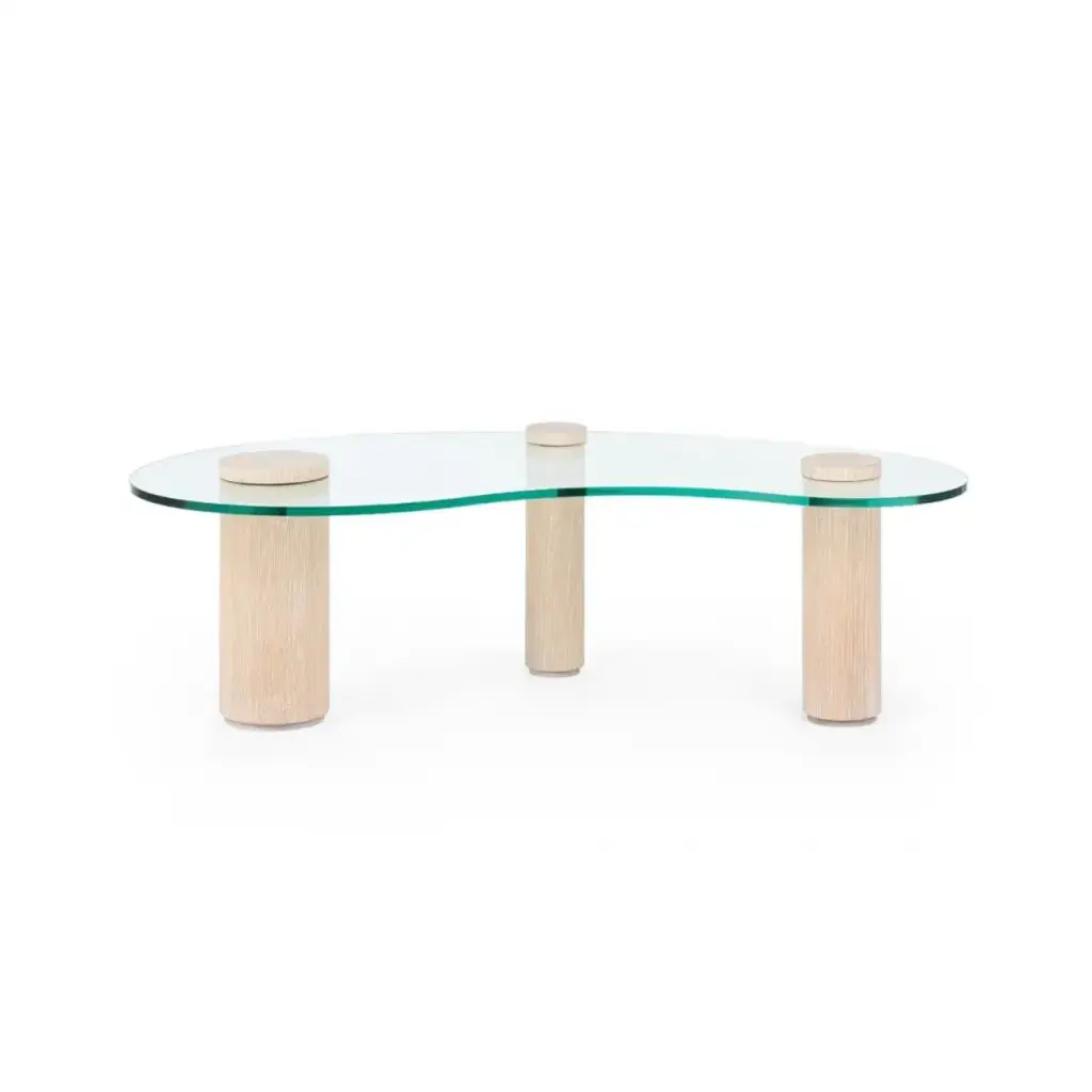 The Scarlotti Coffee Table draws inspiration from 1960s Italian aesthetics and embodies sleek simplicity with its organic contours. Its tempered glass top is gracefully upheld by three columns of varying proportions, creating a captivating visual allure. Effortlessly blending relaxed vibes with a touch of luxury, it adds playful movement to any space. Available in two sizes, The Scarlotti Collection offers versatility, allowing you to mix and match for a personalized look in your home.