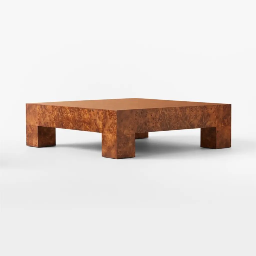 Scatola 48" Square Brown Burl Wood Coffee Table