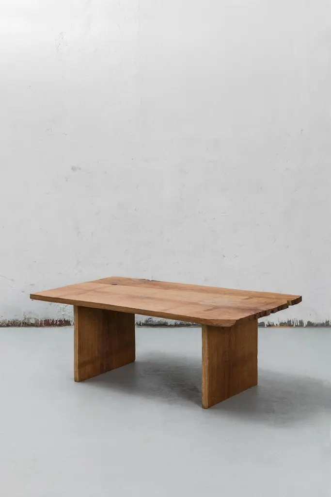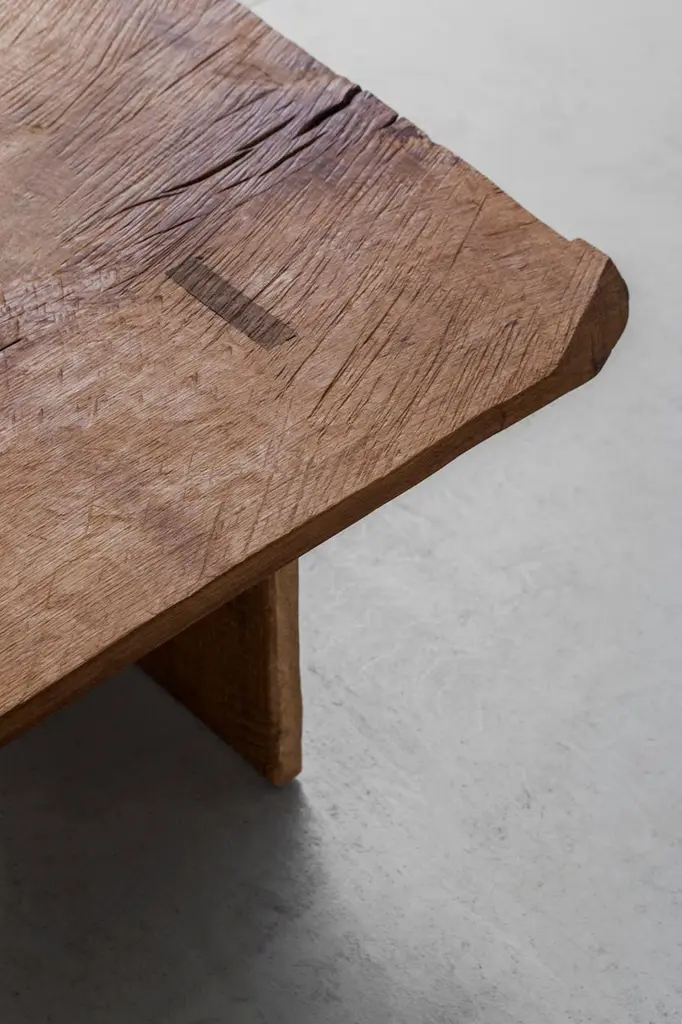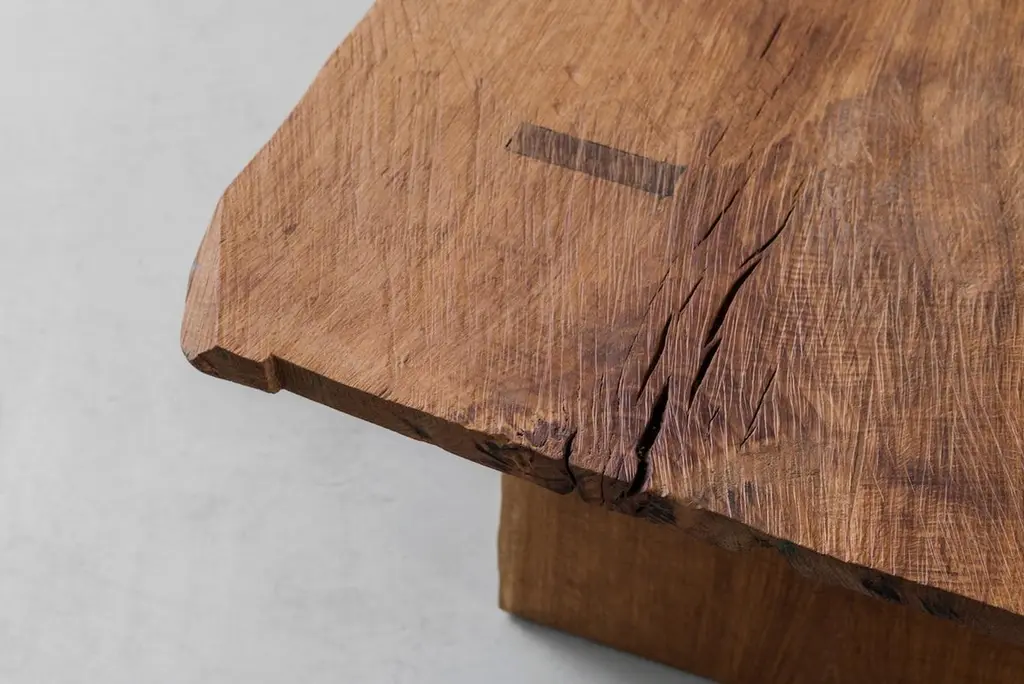 Coffee table of solid oak (+ linseed oil)(Outdoor use OK)SÓHA design studio conceives and produces furniture design and decorative objects in solid oak in an authentic style. Inspiration to create all these items comes from the Russian North aesthetics with its severe nature, log huts black from time and climate and scant patterns. Wood is masterfully hand processed with chainsaw or chisel, whereby producing beautiful surface patterns. The wood is soaked in boiling baths of linseed oil, creating this special patina and making each creation a very unique piece. Reacting with tanning substances under high temperature, oil gives the objects expressive and natural colours, from light brown to charcoal-black. SÓHA offers a vast array of neo-primitivist interior objects. Our kitchen utensil, wall panels, sculptures and furniture solutions are executed in one unique style and will organically fit into the interior of your home. Each piece is one-of-a-kind handmade product.Unique piece made to order.