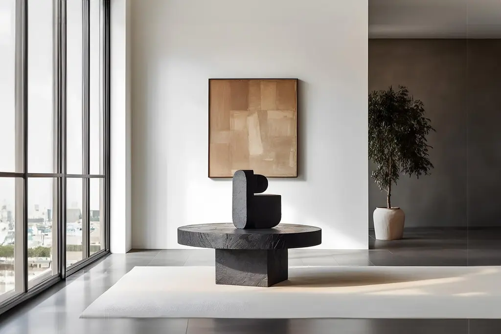 Sculptural Elegance Unseen Force #12 Joel Escalona's Oak Table, Artistic Finish——Sculptural coffee table made of solid wood with a natural water-based or carbonized finish. Due to the nature of the production process, each piece may vary in grain, texture, shape or even size.The dimensions provided refer to the table only. The dimensions and shape of the sculpture may vary.—About the Concept. Unseen Force Coffee Tables and Side Tables, design by Joel Escalona for NONOWhen Tables Talk ArtIn the spirit of Constantin Brancusi's philosophy, where the plinth was as much a work of art as the sculpture it displayed, Joel Escalona's Unseen Force Collection for NONO epitomizes the harmonious fusion of art and function. The tables in this collection are not mere pedestals for display but integral components of a single artistic vision, where the sculptural forms atop them resonate with the base, each enhancing the other’s aesthetic and purpose.Drawing inspiration from Brancusi's iconic design ethos, Escalona transcends the traditional separation between object and support. His tables become one with the sculptures that adorn them, embodying NONO's commitment to daily beauty and a luxurious presence. With an exquisite blend of shapes, colors, and textures, the collection stands as a testament to a narrative of elegance that speaks through its simplicity and balance.Each piece, a result of a meticulous three-month process, is a testament to NONO’s dedication to high-quality standards and the ethos of crafting relationships between the furniture and the beholder. Made from solid wood, featuring varied tones, textures, and shapes, no two pieces are identical; each will be unique in its own merit. Escalona's visionary approach lends communicative power to the designs, ensuring they capture attention and provoke thought, promising not just to occupy space but to enrich the living experience.NONO, with its comprehensive perspective on beauty and creativity for everyday spaces, finds an articulate voice in Joel Escalona's designs. A confluence of creative impulse and rigorous functionality, Escalona’s Unseen Force Collection presents furniture that’s inherently innovative, charged with confidence, and etched with the distinct narrative of NONO's design language. In these creations, Joel’s style—recognized and lauded by international design authorities—is evident in the intricate layers, functional richness, and aesthetic clarity that each piece presents, making them contemporary artifacts that speak volumes in the quietest of rooms.This synergy between NONO’s philosophy and Escalona’s innovative artistry marks a trailblazing path in furniture design, where everyday objects become a dialogue between the sensual and the practical, the local and the global—each piece an ambassador of the vibrant, forward-thinking spirit that both NONO and Joel Escalona champion.—NONO is a Mexican design brand with more than 10 years of experience dedicated to the production of interior furnishings, editions, and custom-made projects. At NONO, we create pieces of extraordinary beauty, accommodating the particular needs and tastes of each client with exclusive high-quality designs.————Some details to consider when placing an order with us:• Catalog images are digitally generated. Actual products may slightly vary in texture, grain, and final finish due to natural material differences. Despite these variations, our expertise ensures each piece maintains high quality and matches the intended design.• All of our products are made to order, and the lead time for standard products is estimated to be 9 to 12 weeks, plus shipping time. However, special pieces or sculptures may require a longer lead time.• We offer customization in dimensions and finish for all of our furniture pieces, which may result in additional charges.• We only facilitate freight services by a third party. The client is solely responsible for any associated import/export taxes, as well as any necessary customs paperwork.• We are not responsible for any damages that may occur during shipping or for any customs-related delays.