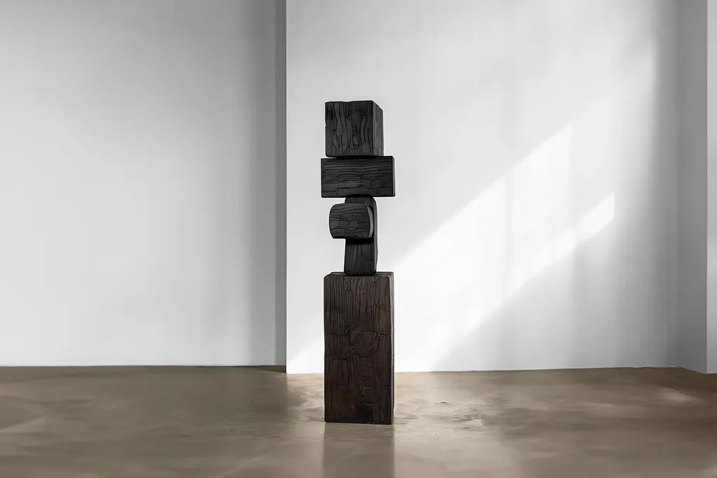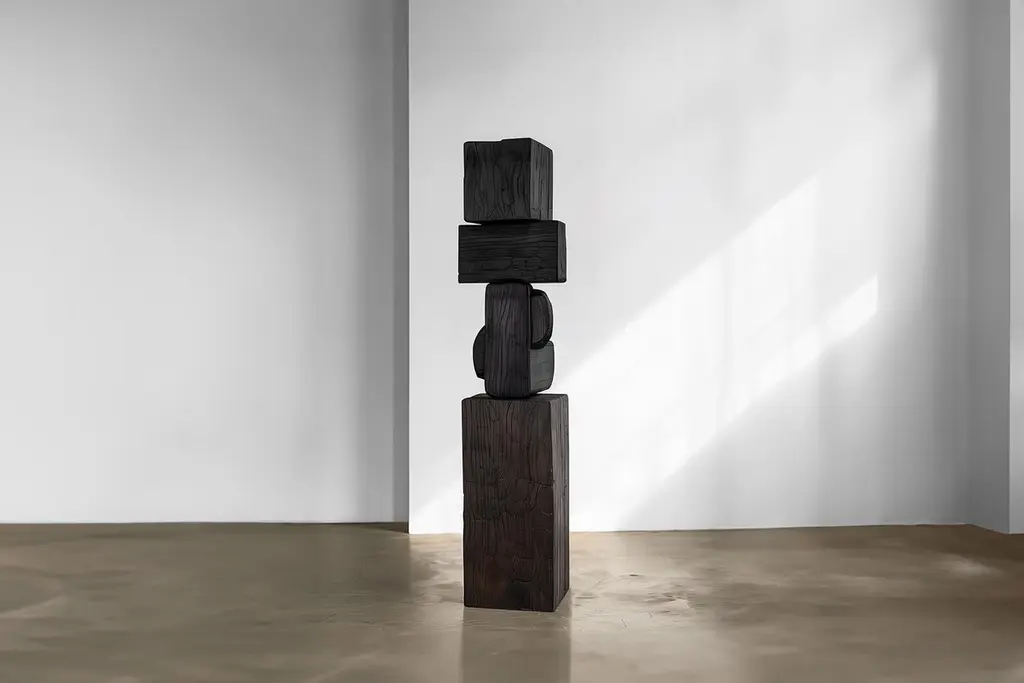 Sculptural Elegance Unseen Force #53: Joel Escalona's Solid Wood Coffee Table———This monolithic sculpture, designed by the talented Artist Joel Escalona, is a towering example of beauty in craftsmanship. Hand and digital machine made; the standing sculpture stands tall as a monument to the skill of the artist. The wood carved sculpture is a biomorphic pillar with an intriguing, wonderfully undulating surface, crafted with precision and care to create a wonderful patina.Inspired by masters of abstract carving like Constantin Brancusi, Isamu Noguchi and Jean Arp, this outstanding sculpture embodies the spirit of organic art. Each piece is made to order, specific for each client and takes around 3-4 months to complete. Although each sculpture is unique, they all maintain the same spirit, proportions, and dimensions that make them so exceptional.This sculpture, like a beautiful work of art, is prepared to be mounted on a plinth, which is included. The organic sculpture is a beautiful expression of art and nature, a testament to the wonder of the natural world and the power of human creativity. This hand-crafted wood sculpture is a true masterpiece and a magnificent addition to any collection.——NONO is a Mexican design brand with more than 10 years of experience dedicated to the production of interior furnishings, editions, and custom-made projects. At NONO, we create pieces of extraordinary beauty, accommodating the particular needs and tastes of each client with exclusive high-quality designs.————Some details to consider when placing an order with us:• Catalog images are digitally generated. Actual products may slightly vary in texture, grain, and final finish due to natural material differences. Despite these variations, our expertise ensures each piece maintains high quality and matches the intended design.• All of our products are made to order, and the lead time for standard products is estimated to be 9 to 12 weeks, plus shipping time. However, special pieces or sculptures may require a longer lead time.• We offer customization in dimensions and finish for all of our furniture pieces, which may result in additional charges.• We only facilitate freight services by a third party. The client is solely responsible for any associated import/export taxes, as well as any necessary customs paperwork.• We are not responsible for any damages that may occur during shipping or for any customs-related delays.