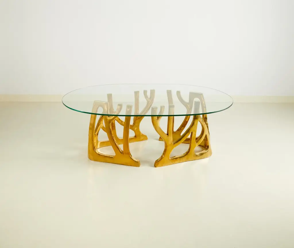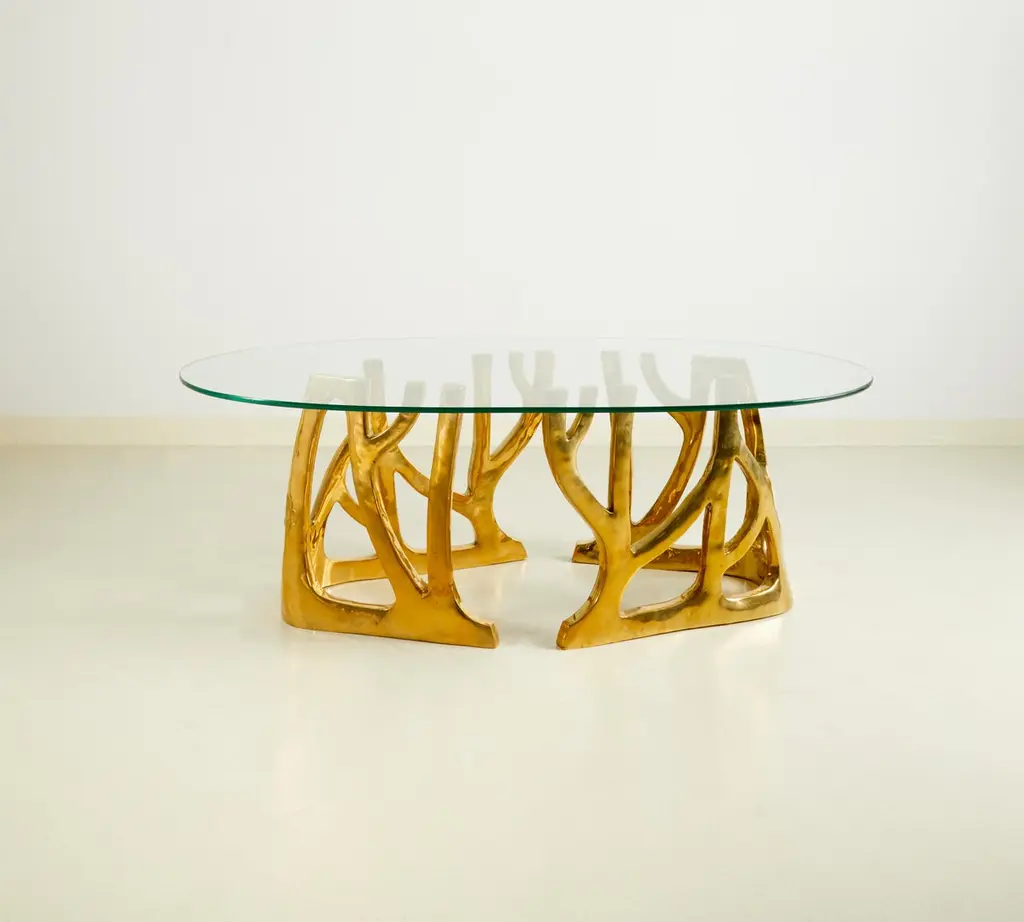 Sculptural Galaxy Oval Coffee Table in Antique Brass by MisayaDimensions: W 48 x L 45 x H 43 cmHand-sculpted brass table.Sold without the Glass topAvailable in different brass finishes.