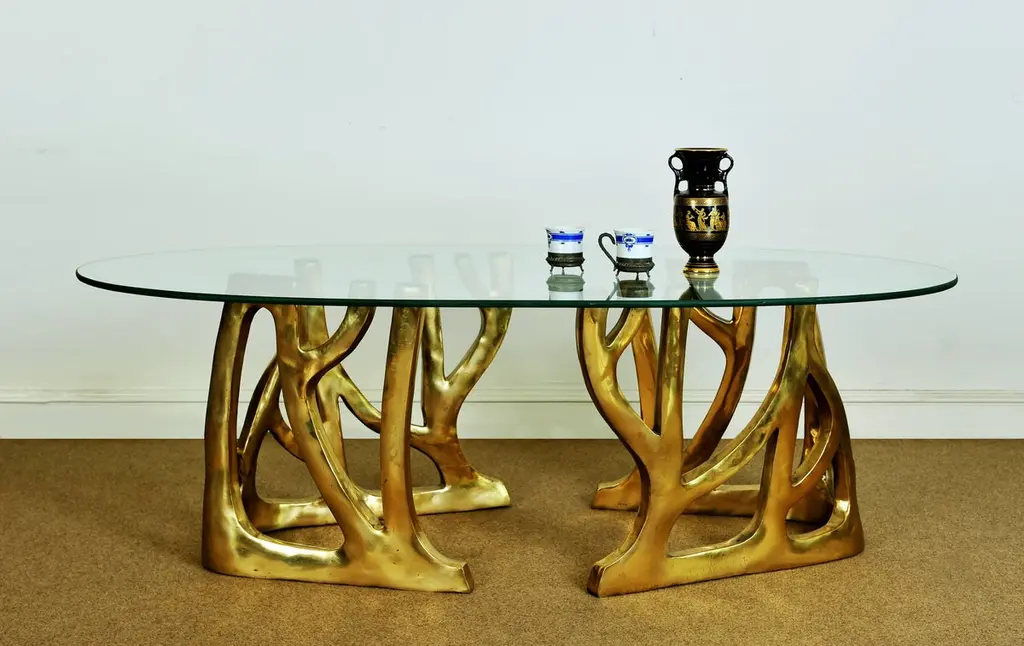Sculptural Galaxy Oval Coffee Table In Antique Brass By Misaya