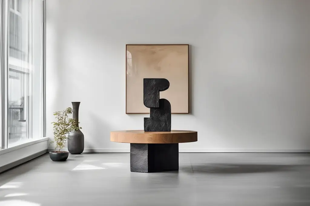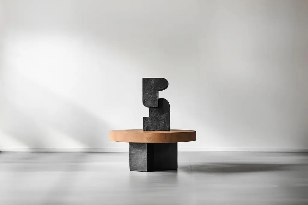 Sculptural Solid Oak Unseen Force #40 Joel Escalona's Table, Art DecorSculptural coffee table made of solid wood with a natural water-based or carbonized finish. Due to the nature of the production process, each piece may vary in grain, texture, shape or even size.The dimensions provided refer to the table only. The dimensions and shape of the sculpture may vary.—About the Concept. Unseen Force Coffee Tables and Side Tables, design by Joel Escalona for NONOWhen Tables Talk ArtIn the spirit of Constantin Brancusi's philosophy, where the plinth was as much a work of art as the sculpture it displayed, Joel Escalona's Unseen Force Collection for NONO epitomizes the harmonious fusion of art and function. The tables in this collection are not mere pedestals for display but integral components of a single artistic vision, where the sculptural forms atop them resonate with the base, each enhancing the other’s aesthetic and purpose.Drawing inspiration from Brancusi's iconic design ethos, Escalona transcends the traditional separation between object and support. His tables become one with the sculptures that adorn them, embodying NONO's commitment to daily beauty and a luxurious presence. With an exquisite blend of shapes, colors, and textures, the collection stands as a testament to a narrative of elegance that speaks through its simplicity and balance.Each piece, a result of a meticulous three-month process, is a testament to NONO’s dedication to high-quality standards and the ethos of crafting relationships between the furniture and the beholder. Made from solid wood, featuring varied tones, textures, and shapes, no two pieces are identical; each will be unique in its own merit. Escalona's visionary approach lends communicative power to the designs, ensuring they capture attention and provoke thought, promising not just to occupy space but to enrich the living experience.NONO, with its comprehensive perspective on beauty and creativity for everyday spaces, finds an articulate voice in Joel Escalona's designs. A confluence of creative impulse and rigorous functionality, Escalona’s Unseen Force Collection presents furniture that’s inherently innovative, charged with confidence, and etched with the distinct narrative of NONO's design language. In these creations, Joel’s style—recognized and lauded by international design authorities—is evident in the intricate layers, functional richness, and aesthetic clarity that each piece presents, making them contemporary artifacts that speak volumes in the quietest of rooms.This synergy between NONO’s philosophy and Escalona’s innovative artistry marks a trailblazing path in furniture design, where everyday objects become a dialogue between the sensual and the practical, the local and the global—each piece an ambassador of the vibrant, forward-thinking spirit that both NONO and Joel Escalona champion.—NONO is a Mexican design brand with more than 10 years of experience dedicated to the production of interior furnishings, editions, and custom-made projects. At NONO, we create pieces of extraordinary beauty, accommodating the particular needs and tastes of each client with exclusive high-quality designs.————Some details to consider when placing an order with us:• Catalog images are digitally generated. Actual products may slightly vary in texture, grain, and final finish due to natural material differences. Despite these variations, our expertise ensures each piece maintains high quality and matches the intended design.• All of our products are made to order, and the lead time for standard products is estimated to be 9 to 12 weeks, plus shipping time. However, special pieces or sculptures may require a longer lead time.• We offer customization in dimensions and finish for all of our furniture pieces, which may result in additional charges.• We only facilitate freight services by a third party. The client is solely responsible for any associated import/export taxes, as well as any necessary customs paperwork.• We are not responsible for any damages that may occur during shipping or for any customs-related delays.