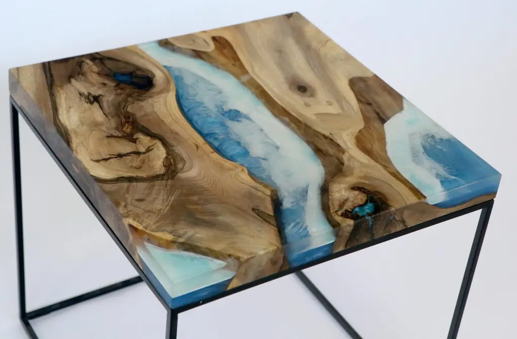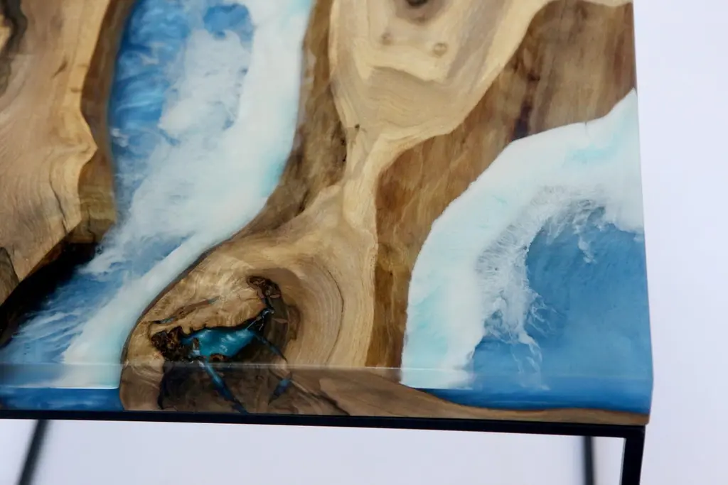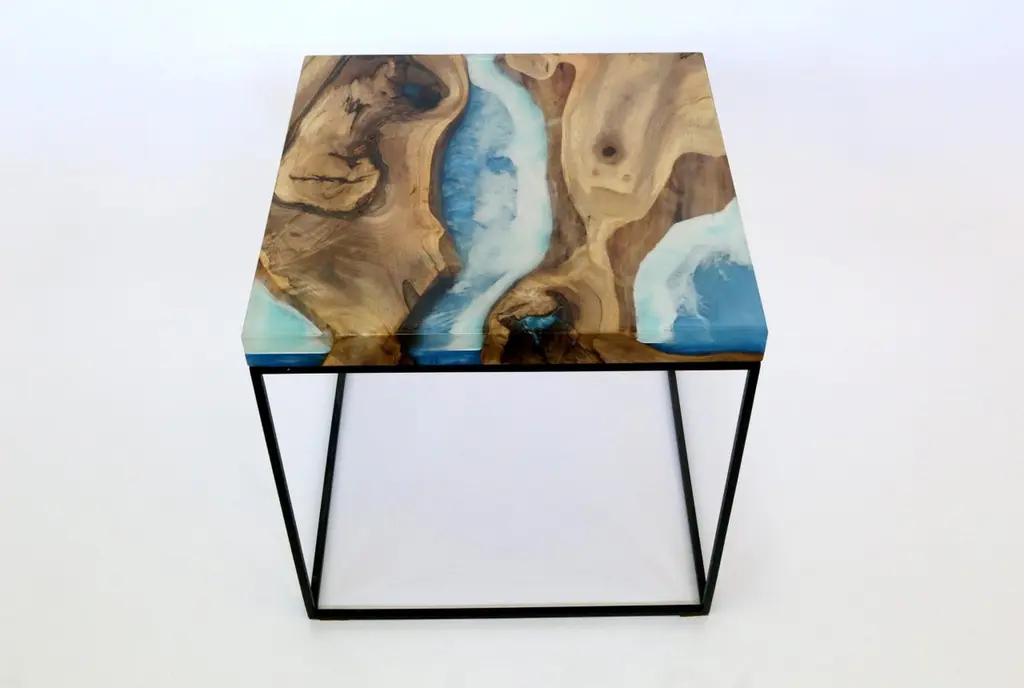 Sea Canyon Coffee Table by KV DesignOne Of A KindDimensions: D 50 x W 50 x H 44 cm.Materials: Walnut, epoxy resin, and metal.Everything is custom-made 1 of 1 edition. Please contact us.KV Design is a team of professionals, and we believe that our custom-made furniture is not simply part of the interior design. We use high-quality wood and epoxy resin in the production of unique state-of-the-art products. Our ideology is that our tables are not solely to be used for their main purpose, but also to be observed and enjoyed as a piece of art. Hence, we combine functionality and elegance into the creation of a captivating and complex product. For the production of our furniture, we strive to select the highest quality materials from leading brands on the market. We invest endless hours of manual labor in the making of every single element part of our furniture. However, everyorder is strictly delivered within no more than 4 weeks.